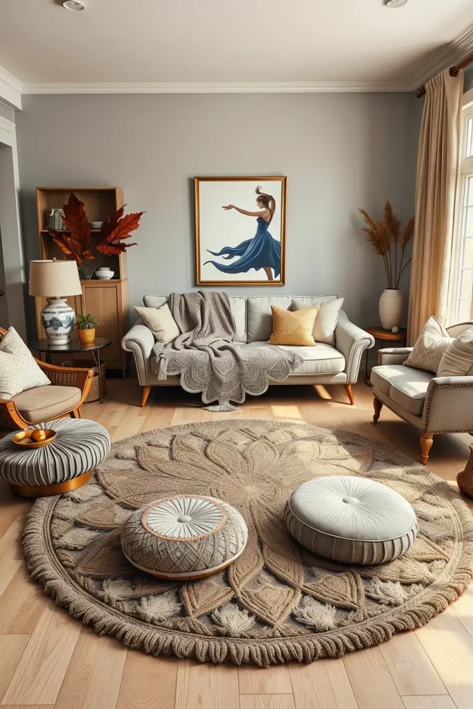 I frequently will start with the large round wool or jute area rug and that is like the earthed part of the room. To top that, I will incorporate throws that include curved stitches or edge binding which will resemble circular movement. It can be brought into play even in a round table linens or even a crochet work.