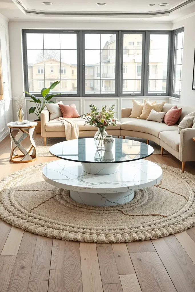 Speaking of tables, one of the most classic and versatile design combinations is the one based on glass and marble and with the rounded corners done. Usually, this style can be referred to as tables of coffee and side tables. I discover that these pieces immediately mellow down the design of any living room, particularly the angled-shaped sofas or rectangular-shaped rugs. The round arcs on a round ended table help traffic move more free around the space decreasing the harsh qualities of straight lines. It is but a minor design decision that has a large impact on comfort and aesthetic unity.