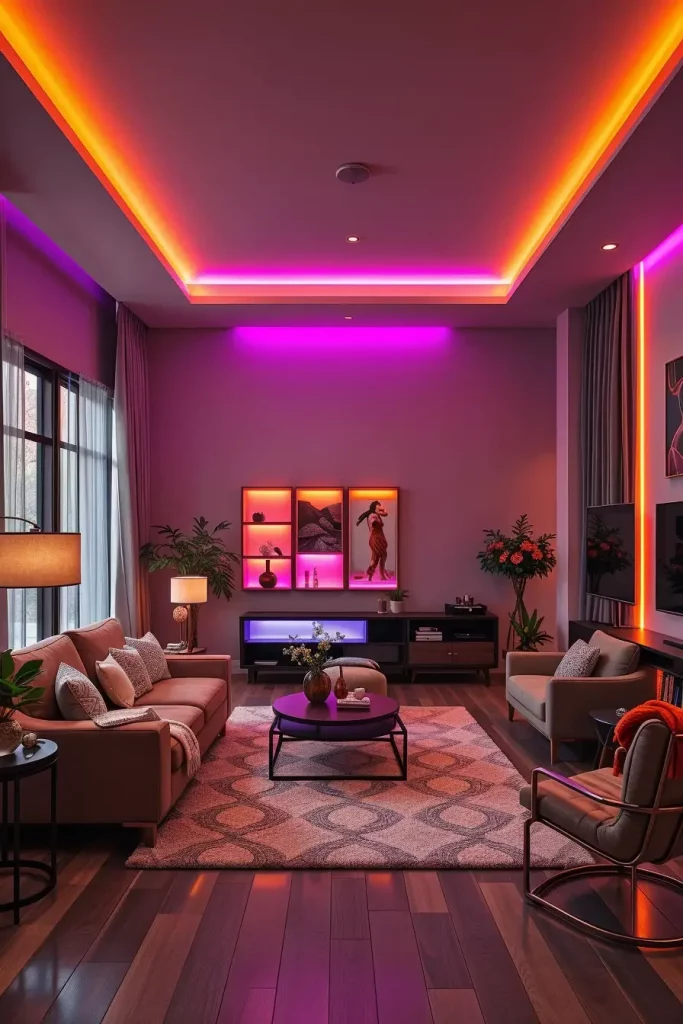 In practice, I have discovered that the fastest method of transforming a mediocre room is to lower the lights and concentrate on table lamps, candles, and point sources of LED strips that are concealed behind shelves. Designers like Emily Henderson routinely recommend lowering the light for mood; I double down with automations that activate when sunset hits (based on your location) to shift the home automatically into “haunt mode.”