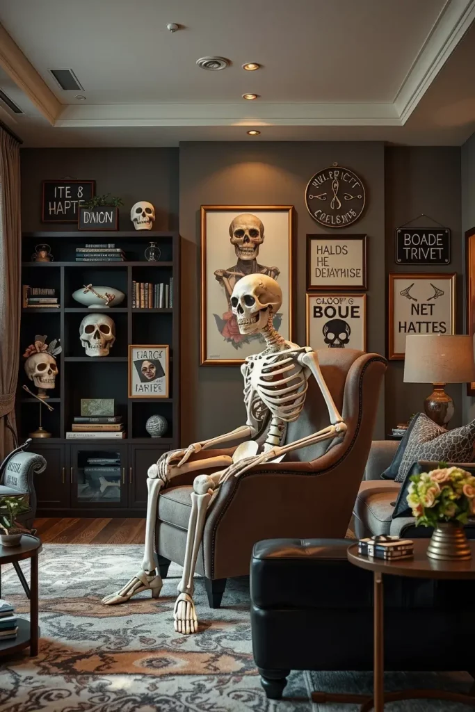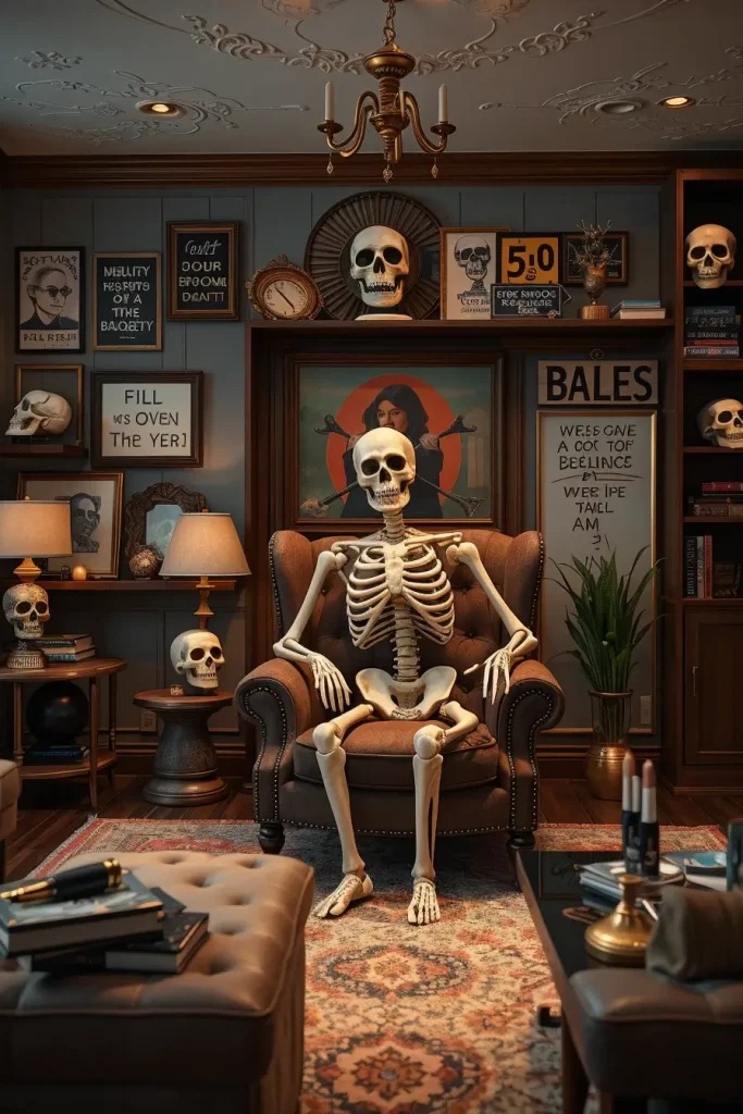 If I had five more hours, I’d add a single scene-stealing prop (a life-size skeleton dressed absurdly chic, or a giant poseable spider crawling over a gallery wall). A single theatrical anchor makes the rest of your speedy repairs appear as deliberate styling as opposed to panic decorating.
