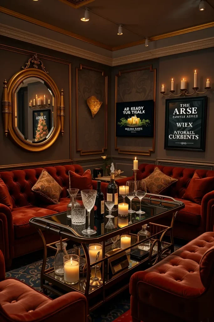 Designers such as Martyn Lawrence Bullard discuss mood in terms of materials, and I do the same. The furniture must be heavy. The clothes must be luxurious. The light ought to be flickering as embers. I have battery-powered lights on dimmers behind clear wine bottles or crimson-stained glass to achieve that candlelit effect without actual candles.