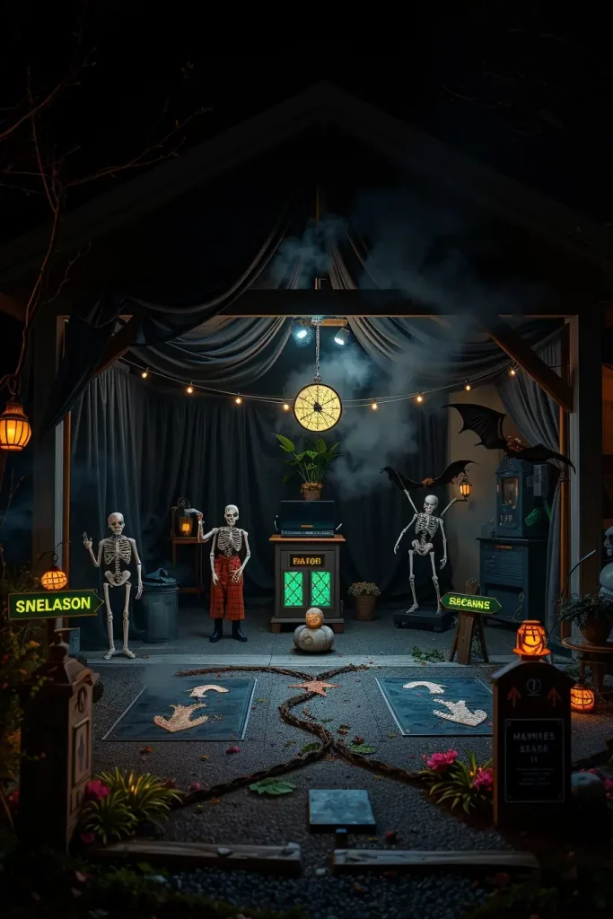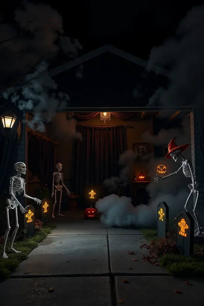 Here I give the big ideas air. By 2025, garages and driveways are immersive walkthroughs: fog machines hidden behind tombstones, synchronized lighting and spooky music, and sensor-activated props that react when people walk past them. These Halloween decor ideas 2025 utilize broad outdoor area, and provide dramatic views even at the curb.