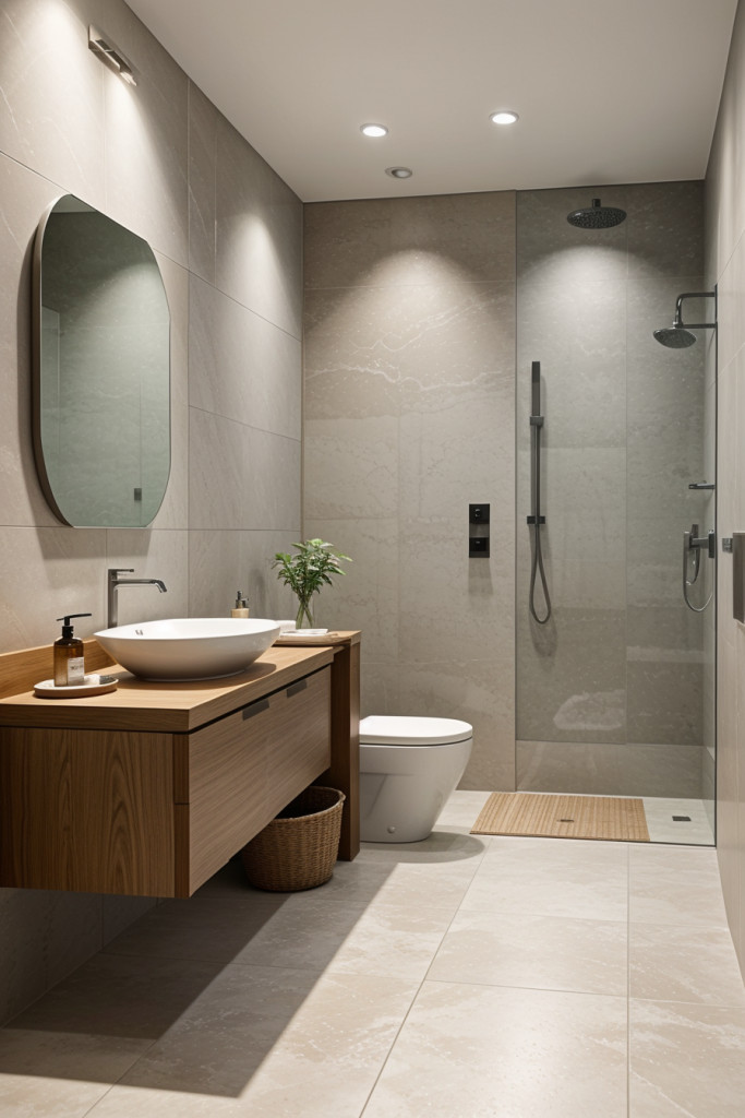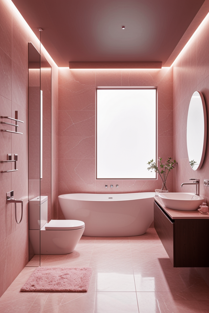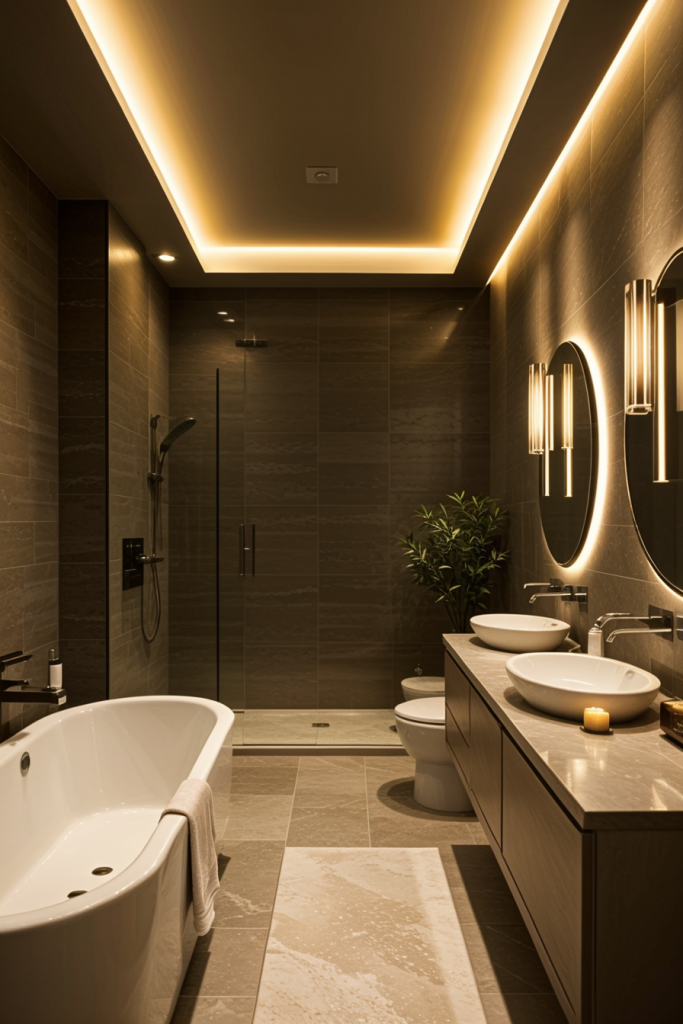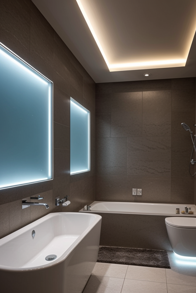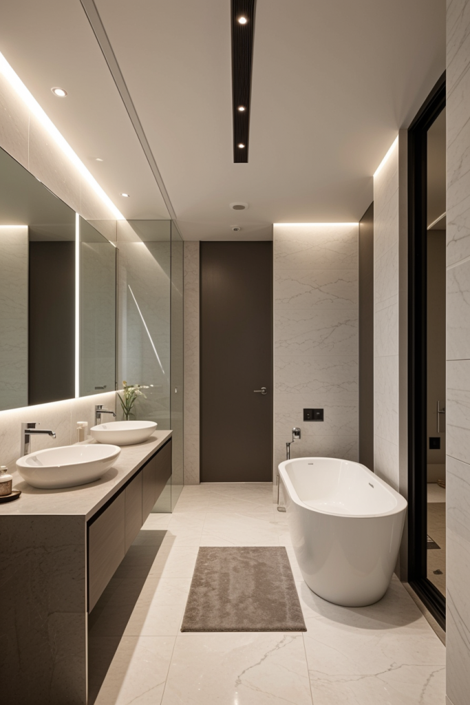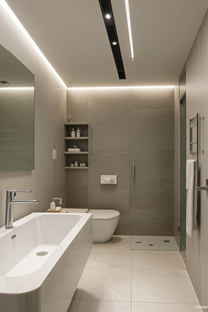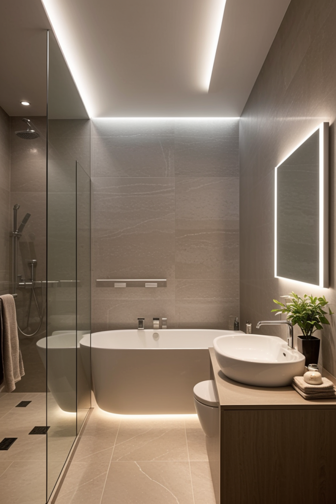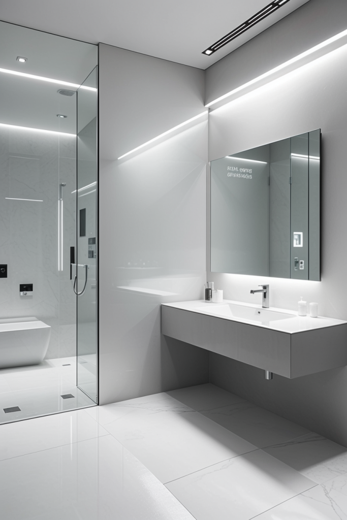 Proper lighting is very important in the design and overall surgical experience of a modern bathroom. The use of integrated lighting such as LED strips and smart sensors illuminates the room’s architectural features while providing a touch of elegance. The systems improve the mood enhancing effects thus enhancing the visibility and turning the area into a calm getaway. The combination of ambient, task, and accent lighting creates a harmonious and multifaceted space that works for any purpose.
