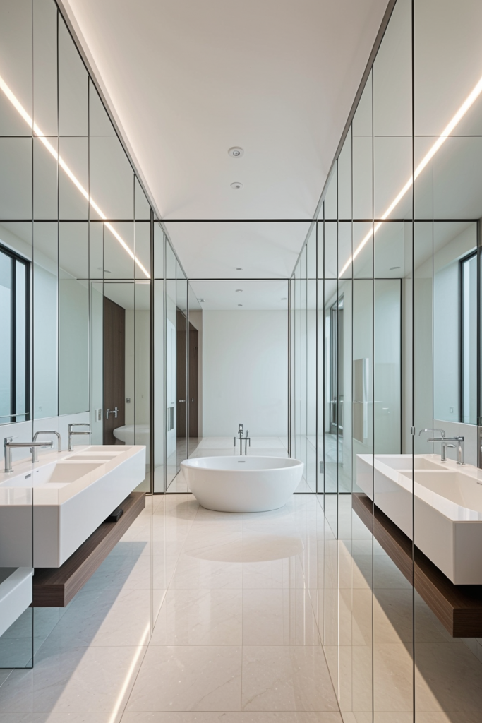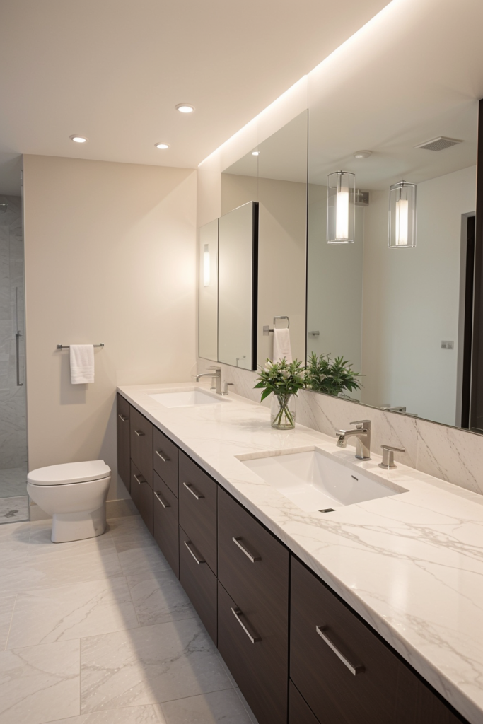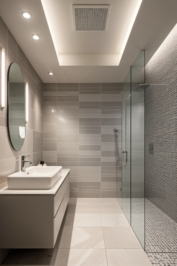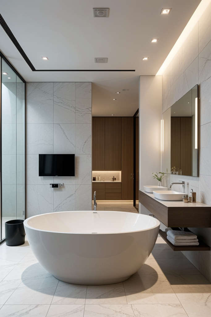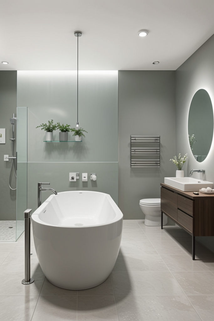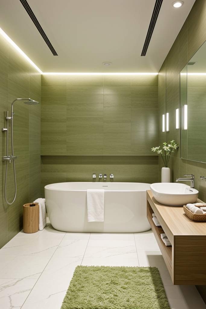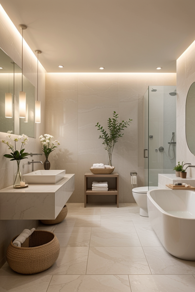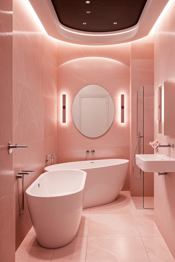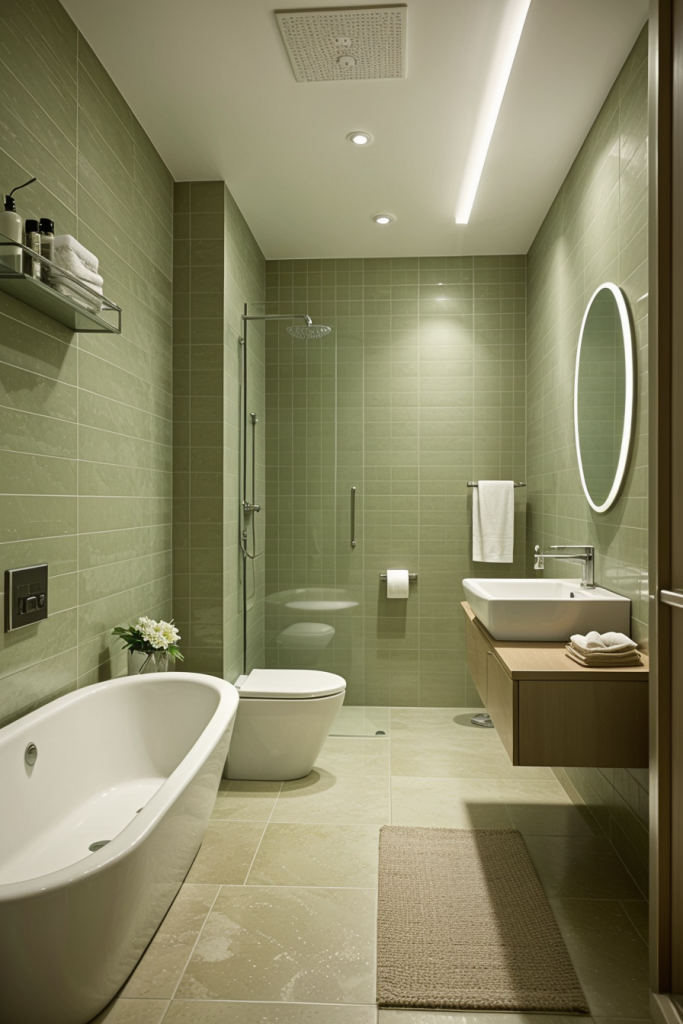 Proper lighting is very important in the design and overall surgical experience of a modern bathroom. The use of integrated lighting such as LED strips and smart sensors illuminates the room’s architectural features while providing a touch of elegance. The systems improve the mood enhancing effects thus enhancing the visibility and turning the area into a calm getaway. The combination of ambient, task, and accent lighting creates a harmonious and multifaceted space that works for any purpose.