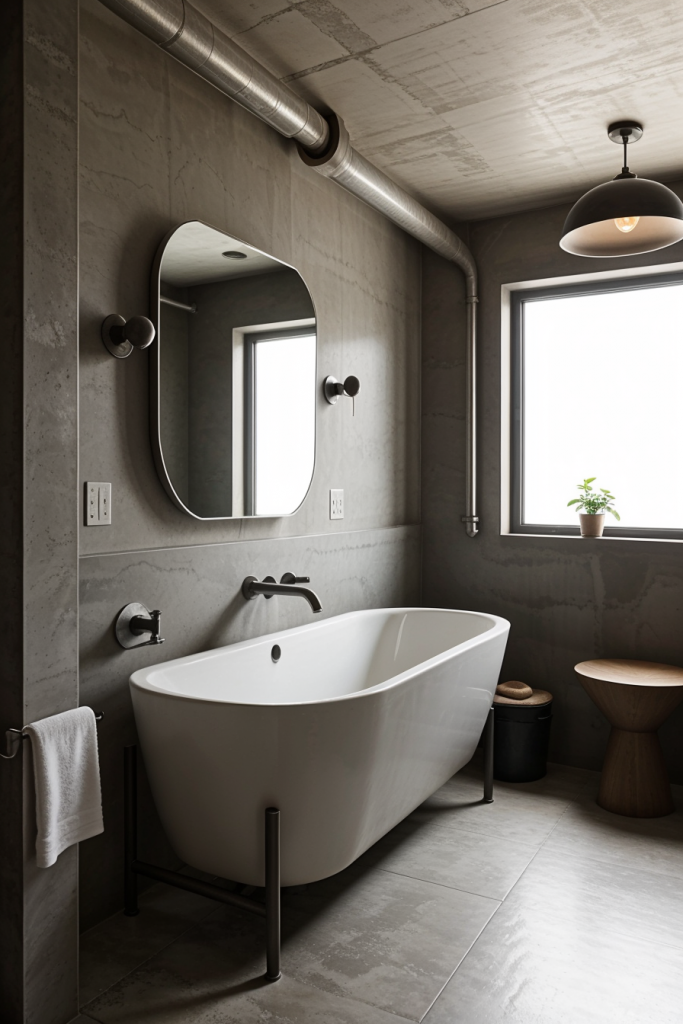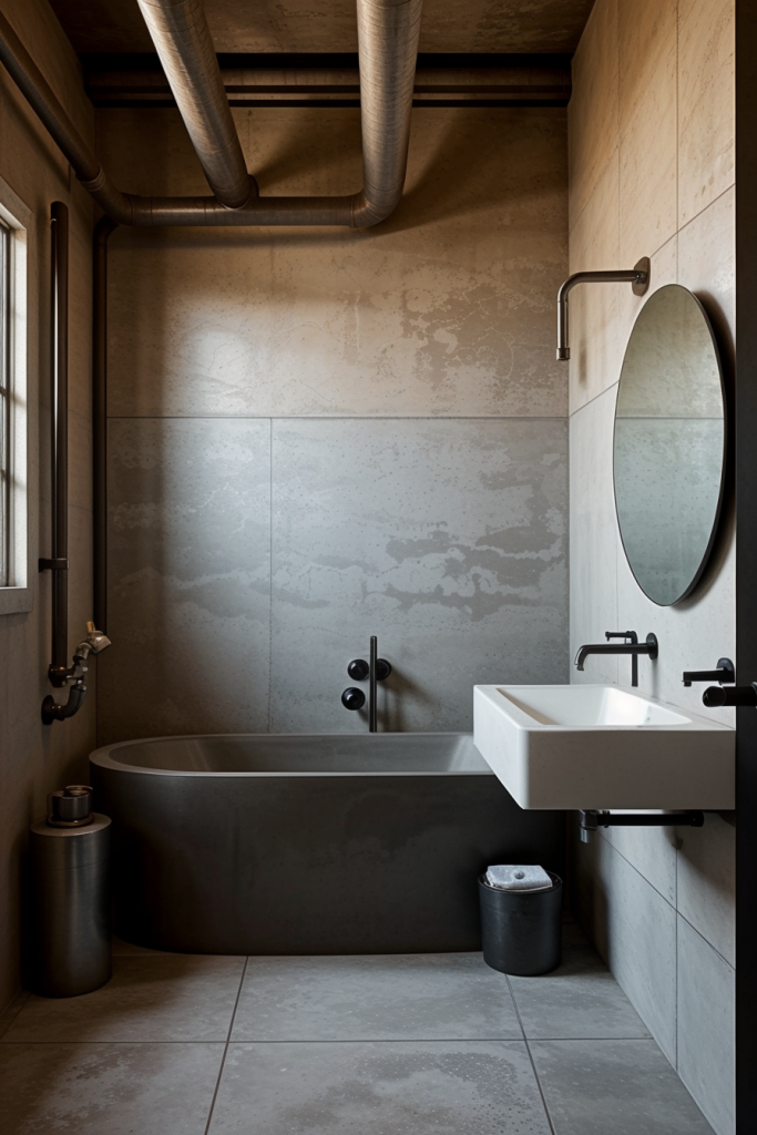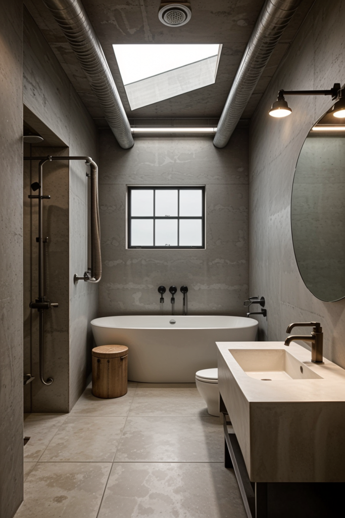 The infusion of industrial design components creates an urban roughness within modern bathrooms which is set in sharp contrast with modern sleek finishes. Bathrooms are brought into the realm of modern art with the bold statement made by the exposed piping, concrete accents, and metallic fixtures, which also incorporate rugged sophistication. These two design styles highlight the juxtaposition between highly functional and beautifully sophisticated design.