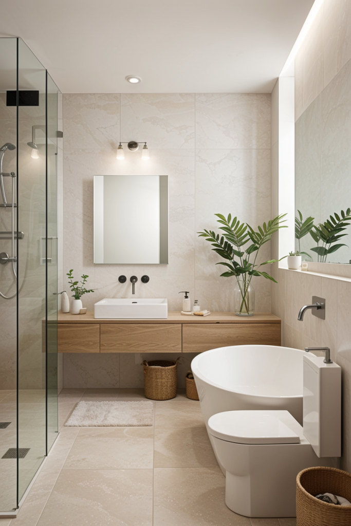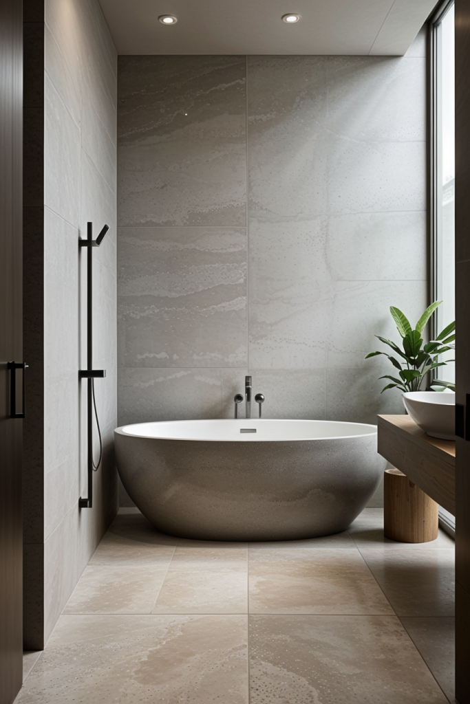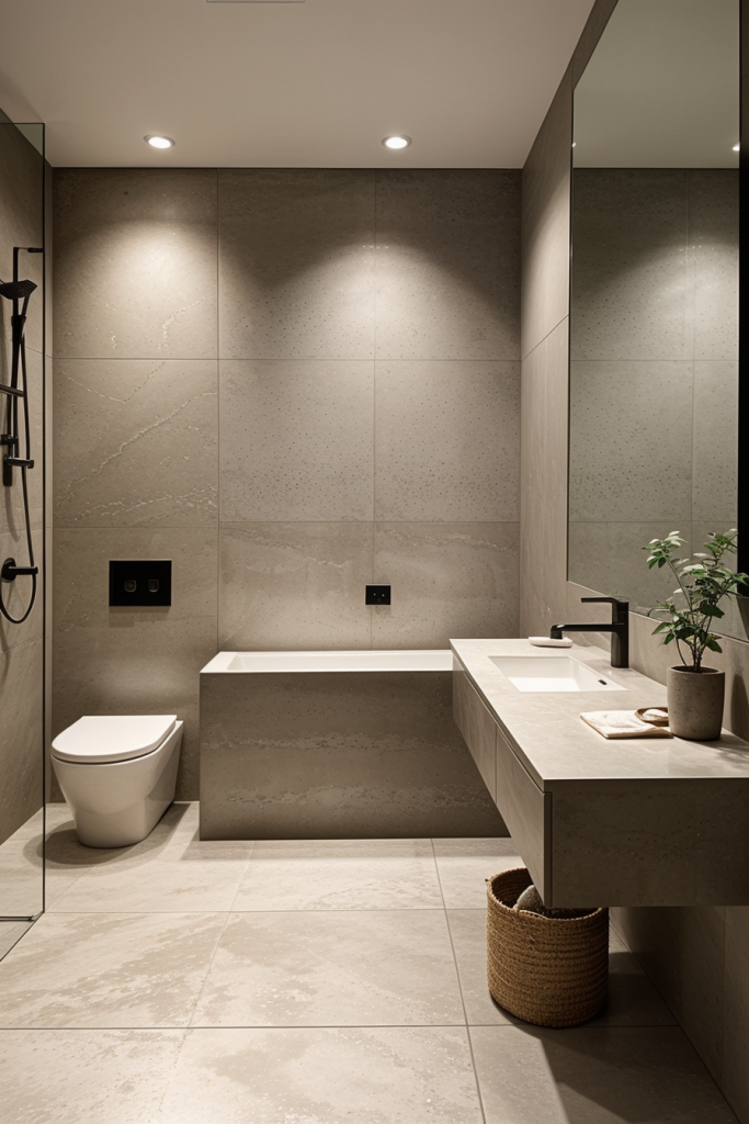 Using suitable materials in a modern bathroom can enhance its beauty and style, combining strength and grace. Innovative materials such as polished stone, concrete, and eco-friendly composites are at the top of modern design. These materials are more than just beautifying the space because they add a new level of warmth and sophistication. When carefully selected together, these materials form strong contrasts which have both practical features and artistic beauty.