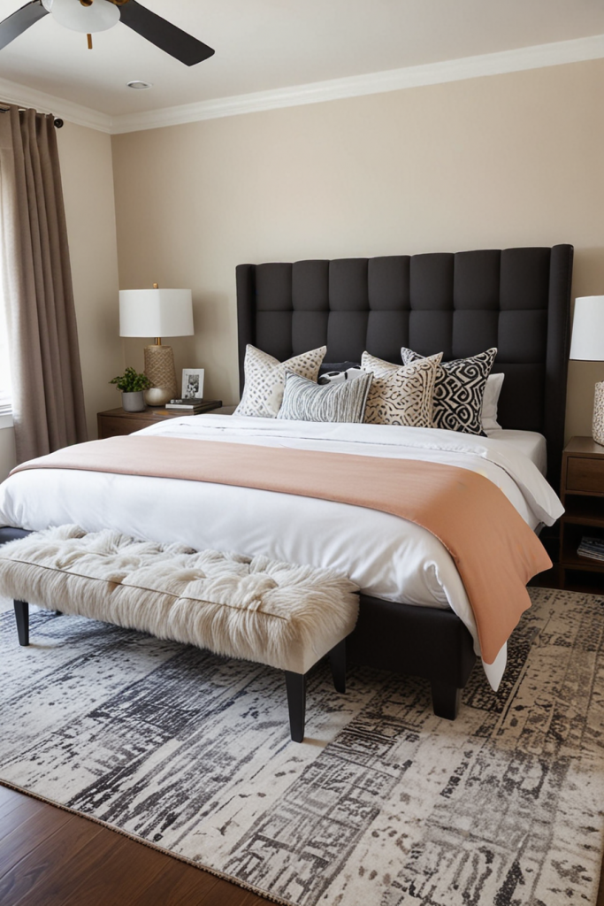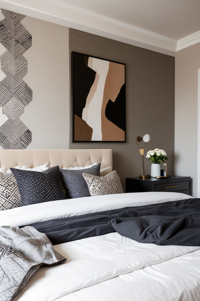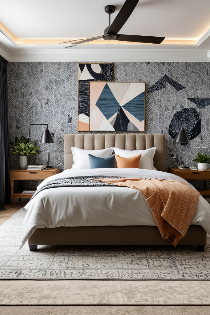 Geometric patterns can enhance beautification and organization in a bedroom’s decor. Rather sharp-fangled coal, incorporating lively lines through wall coverings, fabric, and accessory pieces creates an unparalleled emphasis. Furthermore, the use of curves within right angles as motifs makes the style more modernistic as well as adds volume and decorativeness to the area.