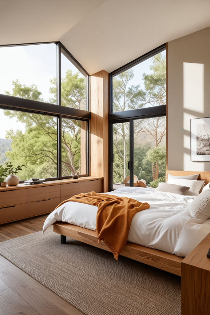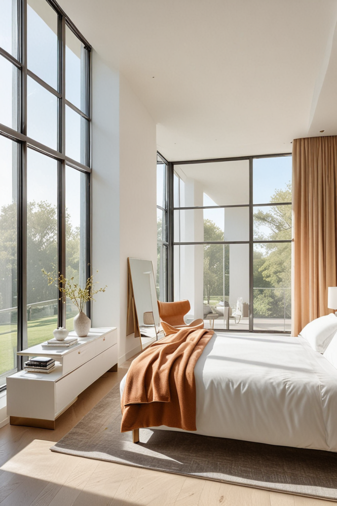 Natural light has a significant impact in improving stylish bedroom ideas and boosts modern design. Here we concentrate on large windows, mirrors, and window coverings that allow light to pour into the room. Apart from maximizing energy use, this design style promotes an inviting, refreshing atmosphere which produces an impression that the place is large and open. This is perfect for those who want to achieve a lively, fresh look while keeping everything modern.