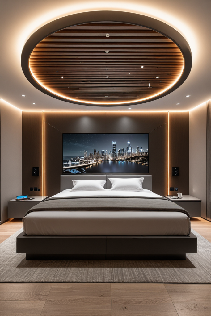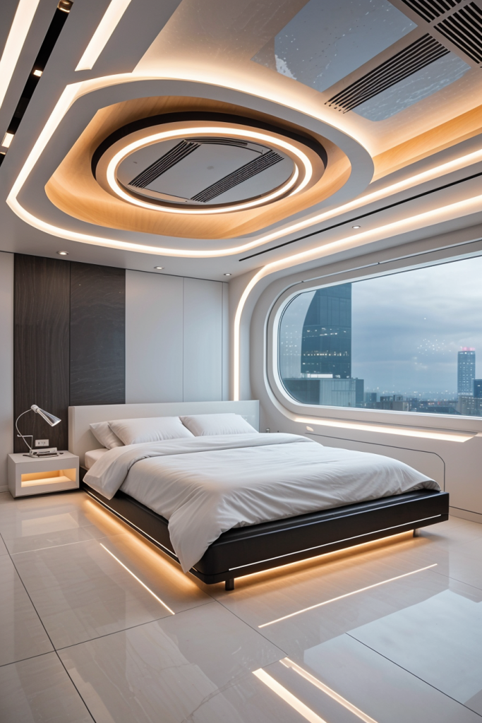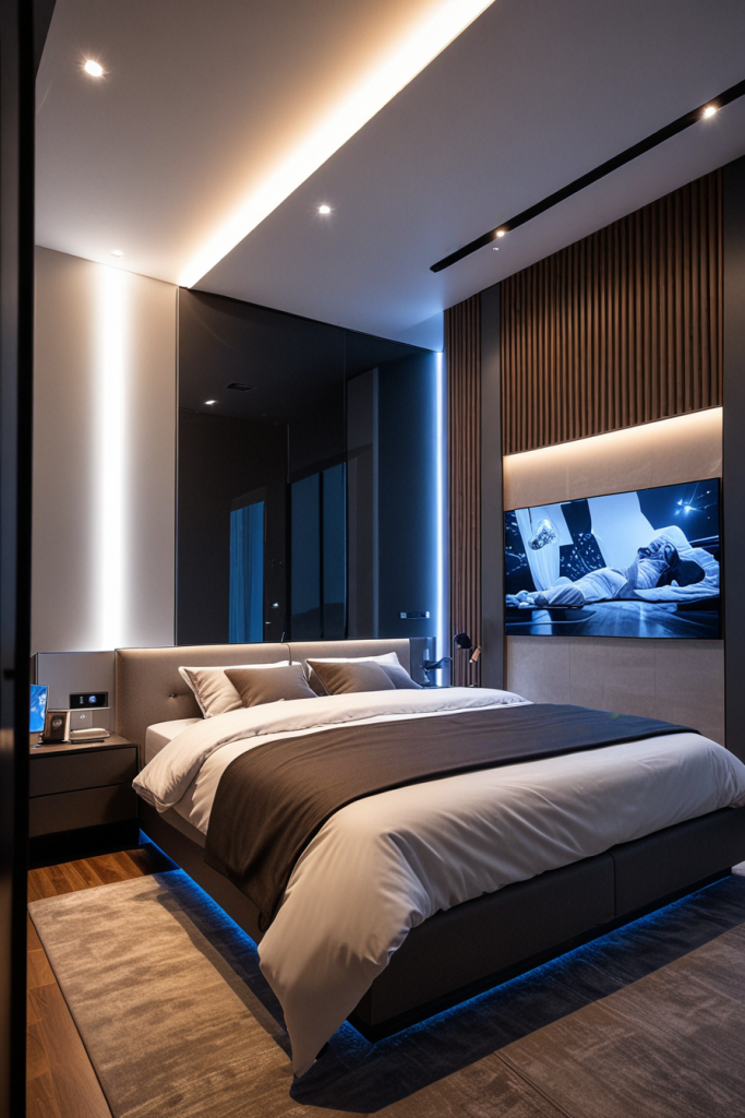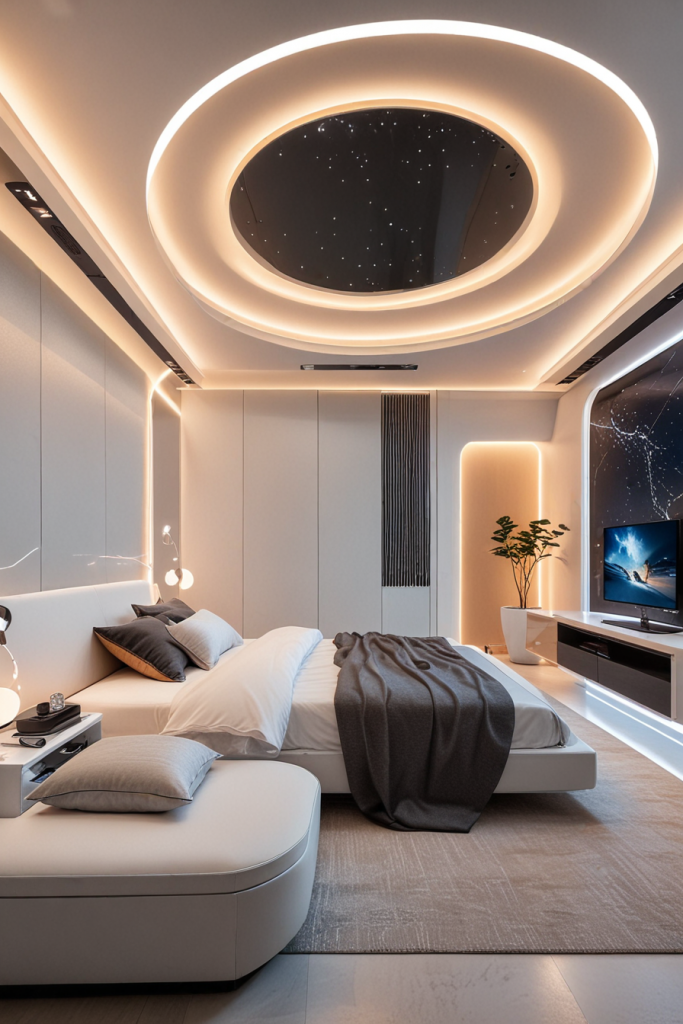 With the use of creative technology, futuristic elements can now be seamlessly integrated to create multifunctional designs for a bedroom. The use of new materials and technologies that integrate modern automation systems for lighting and smart home features gives the space a contemporary feel. These details serve a purpose and show the convenience in modern living which greatly defines luxury.