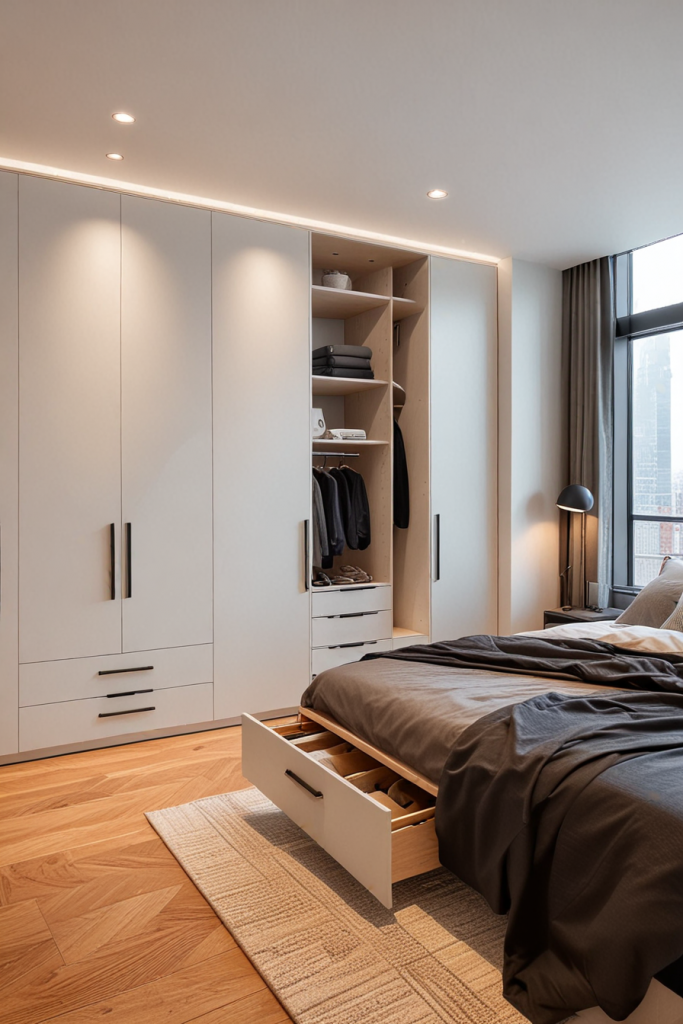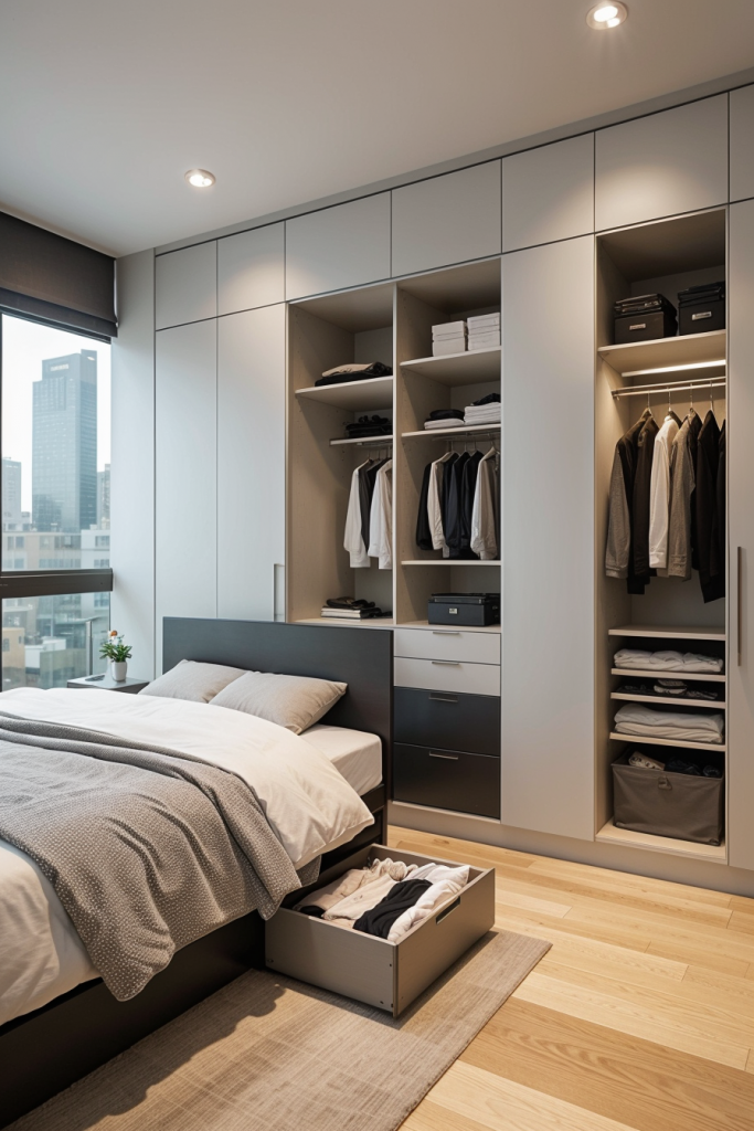 Wherever humans live like in a city, storage space can be an issue. Them having built-in cabinetry, under-bed drawers, and multi-functional furniture that serves more than one purpose and keeps the room free of mess is space saving design policy. The style is functional as well as visually appealing, combining beauty and practicality narrows down to a concept for efficiently designed spaces.