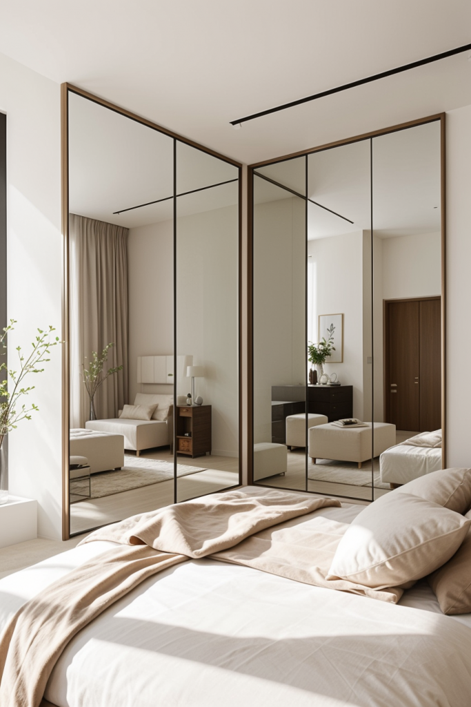 Mirrors are more than just reflective surfaces; they greatly aid in adding radiance and magnificence to contemporary spaces. When juxtaposing stylish bedroom design concepts, large mirrors, that are conveniently located, capture light and give an illusion of larger space, in addition to their modern frames. These design tips enhance the room’s attractiveness and contemporary feel with little to no effort.