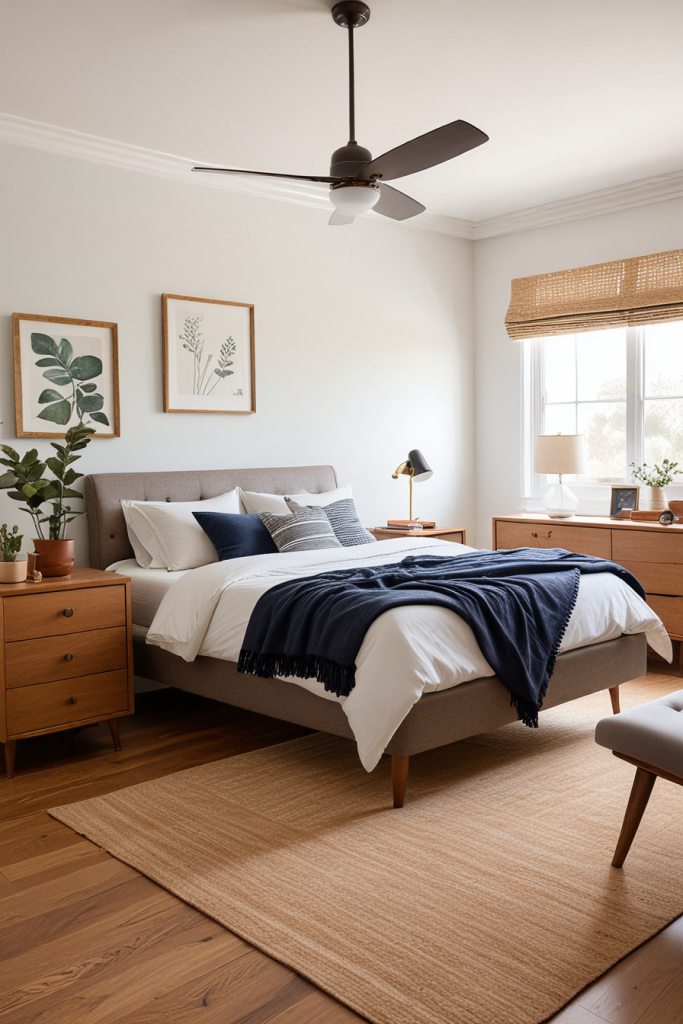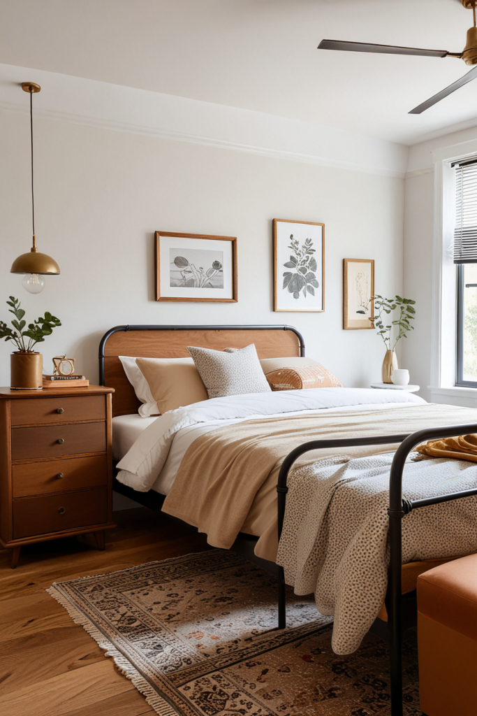 A fusion of modern and vintage charm creates a one of a kind bedroom design that is as inviting as it is unique. This approach combines traditional aspects like retro decor and furniture pieces with modernistic finishes and lines giving an inviting and balanced effect. The mix of the two adds a warm character and timeless beauty which elevates contemporary design.