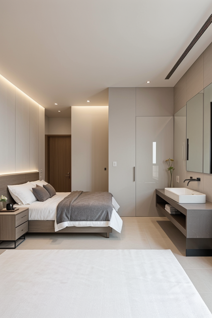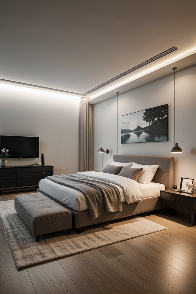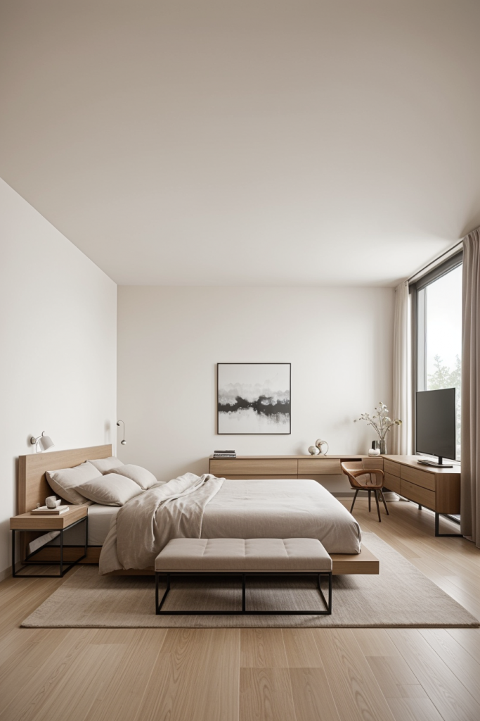 The modern bedroom shifts its focus to clean lines and open forms which promotes simplicity and functional beauty. This design concept features minimal clutter, manageable spaces, and streamlined furniture which enables every element to stand out with precision. This results in an aesthetic that is calming and visually engaging and promotes an atmosphere of serene organization.