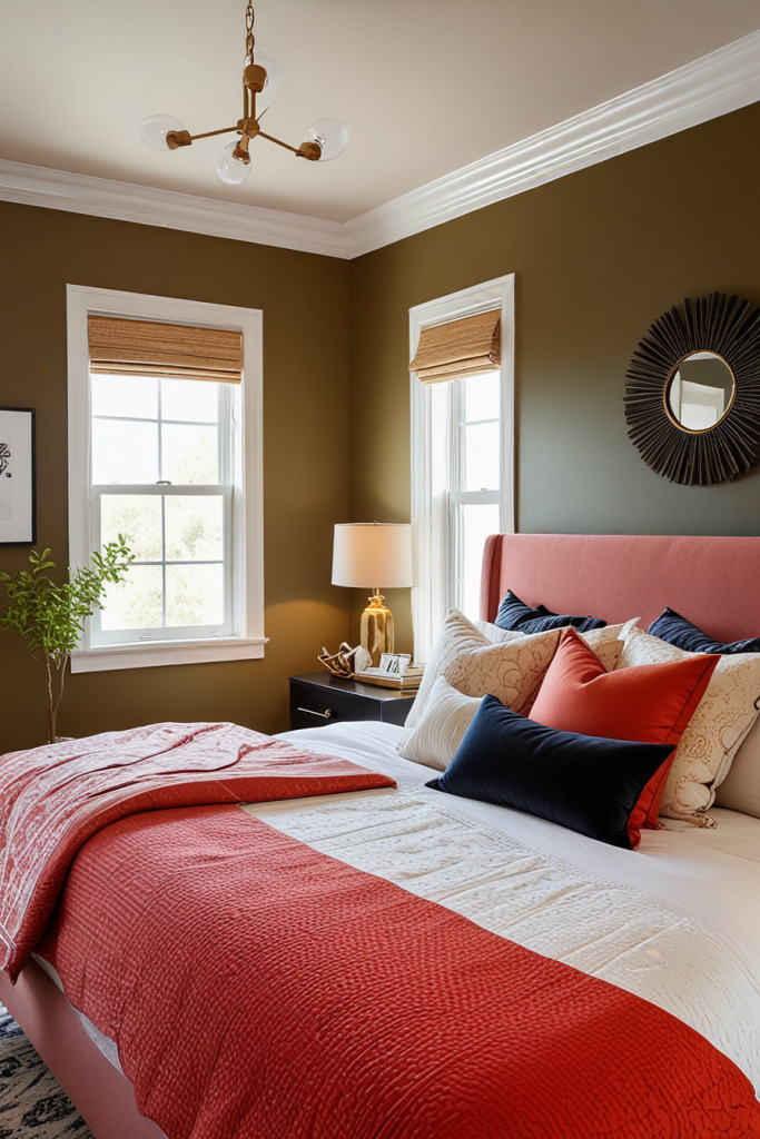 Mixing bold colors and different textures can make a bedroom interesting and more welcoming. This design method seeks to blend strong colors with soft materials, elaborate wall textures, and other constructive elements to achieve vibrancy and balance. The use of energetic colors is expertly moderated and complemented with neutral tones which add elegance.