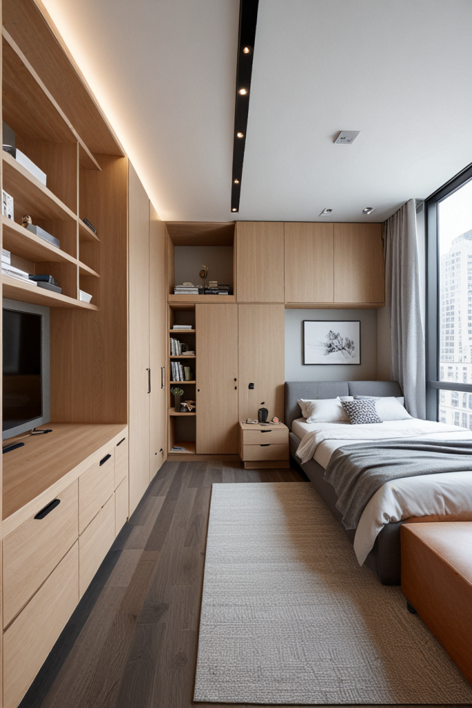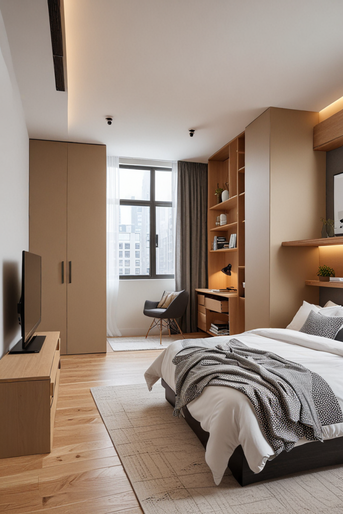 People living in urban areas need to be adaptable, therefore bedrooms with multifunctional spaces provide the best option for optimizing small spaces. This design approach includes convertible furniture pieces, concealed stowage areas, and flexible arrangements that provide both leisure and work settings. Concentrating on elegant bedroom concepts with several functions, these areas are designed for inhabitants of big cities and their ever changing needs while making sure it looks good.