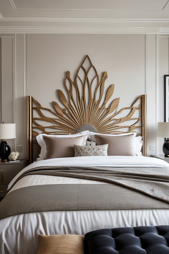 A statement headboard is designed in detail to stand out, thus it serves as the focal point for the entire room. It may be of oversized upholstered type, or of intricate elegantly carved panels that depict imagination and design. Along with anchoring the bed, the headboard balances modern spatial aesthetics.