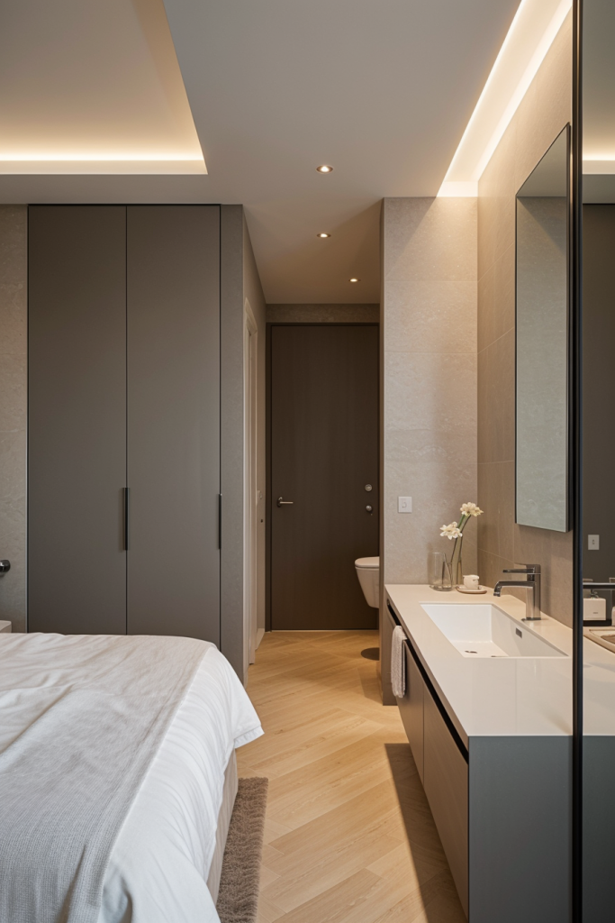 Sleek Bathrooms Adjoining Stylish Bedrooms
