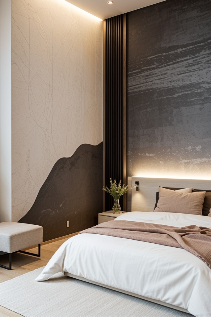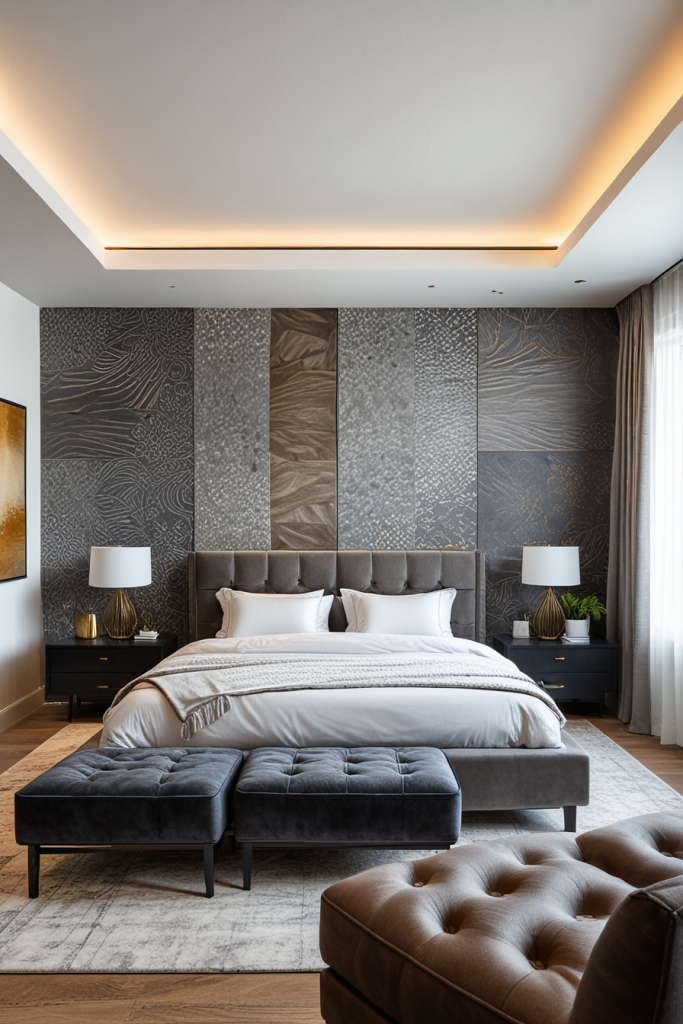 In the modern decor of a bedroom, one of the important elements is that of depth and interest which can be manipulated through various textural contrasts. This approach blends soft features such as plush fabrics with rigid materials like metal or wood, creating a balanced visual experience. These design ideas for bedrooms show that blending textures can enhance the level of sophistication in a room while making sure that all elements maintain a modern and inviting feel.