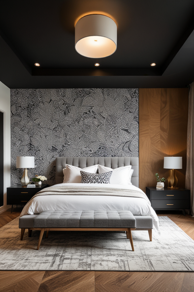 Patterns creatively used in accent elements can turn an ordinary bedroom into a work of art. In this part, we investigate how stylish bold patterns applied to textiles, rugs, and other decor not only modernize design, but also add a dash of fun to sophisticated bedroom designs. The combination of geometric and organic patterns produces a novel fusion of texures and colors which enlivens the room while still being gentle on the senses.