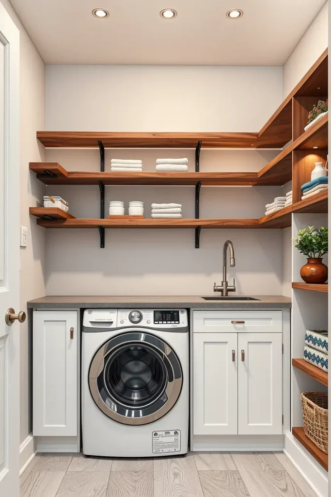 The floating shelves will not only be a storage facility in 2026 but also a style statement. In constructing the modern pantry in the laundry rooms, I will apply stylish floating shelves to create the illusion of expanding the room, as well as to make the room appear large. These shelves create the illusion of space and the necessities are within reach. Their smooth appearance eradicates the amount of clutter and adds the minimalist appeal of any laundry space.