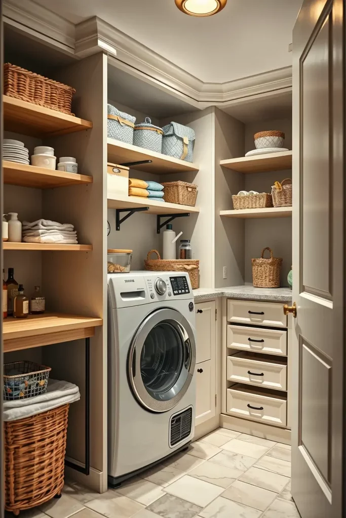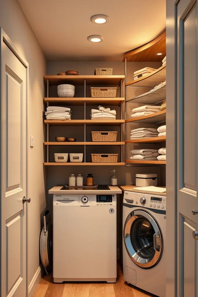How To Incorporate Artistic Storage Racks In A Cozy Laundry Pantry