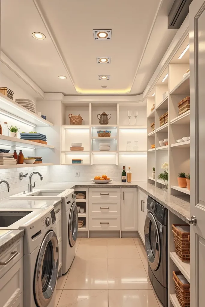 Any laundry room pantry can be altered in terms of mood due to lighting. I have come to know that visibility is not everything, but it is a matter of atmosphere. Properly placed lights showcase the textures, underline forms and add warmth to the sleek, contemporary interiors.