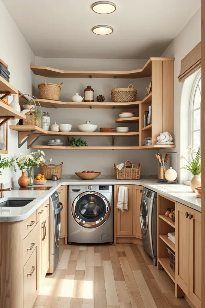 Organic Shapes And Smooth Lines In Laundry Room Pantries