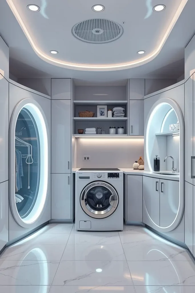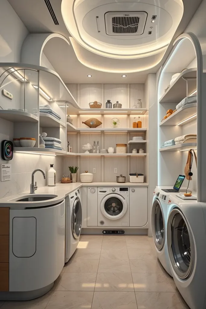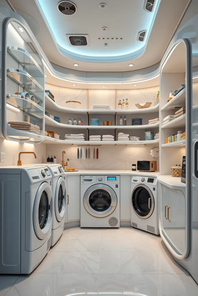 Curved Pantry Doors For A Futuristic Laundry Room Look