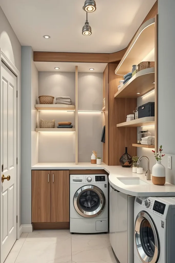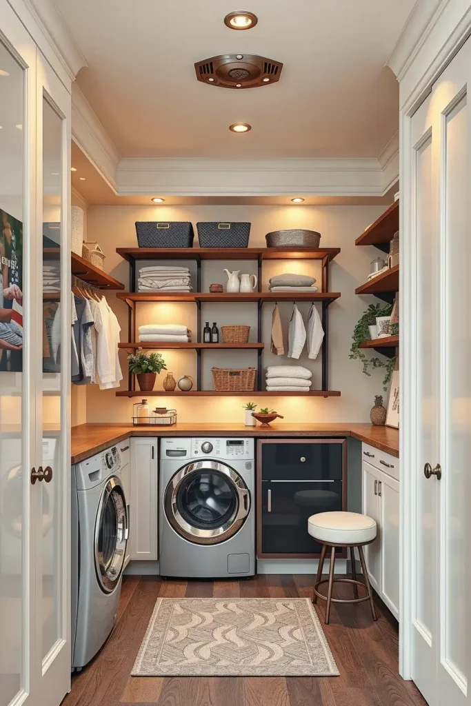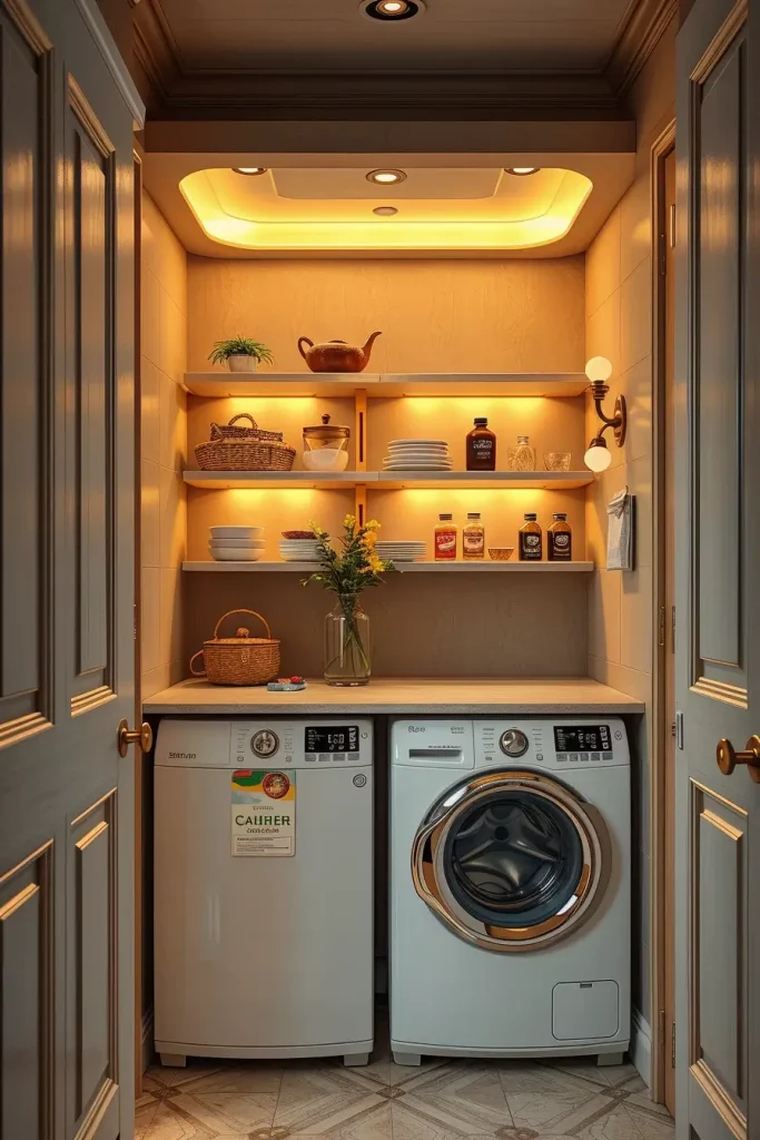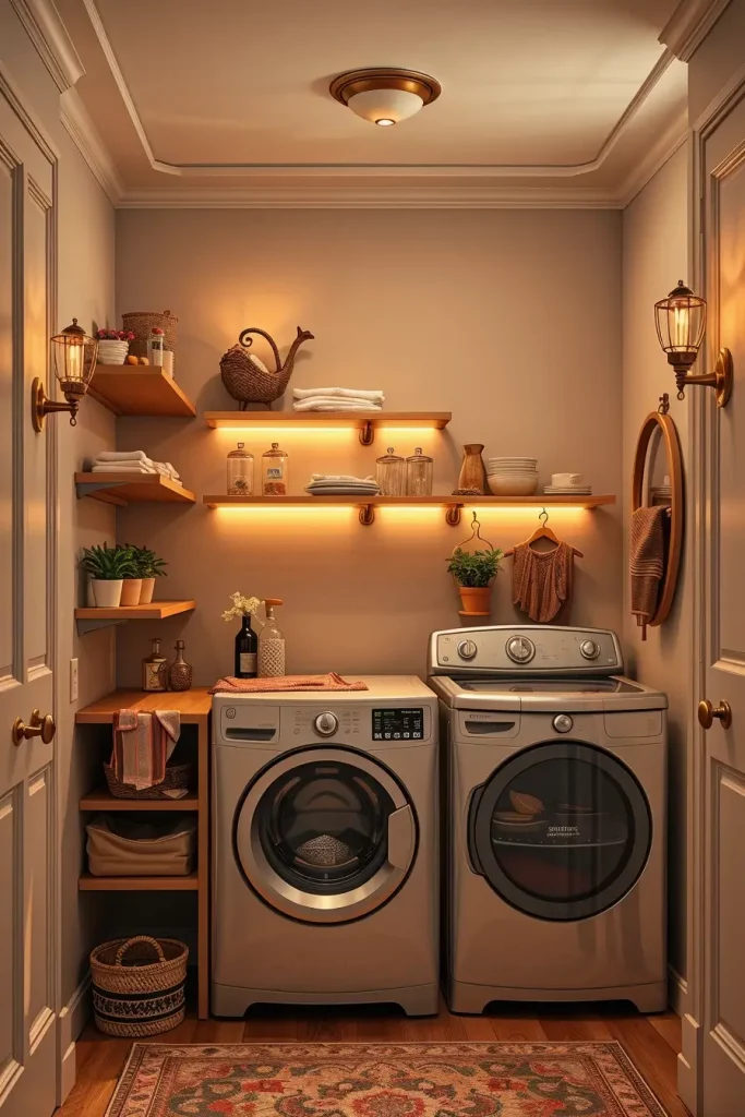 Soft Lighting And Warm Tones For Cozy Laundry Corners