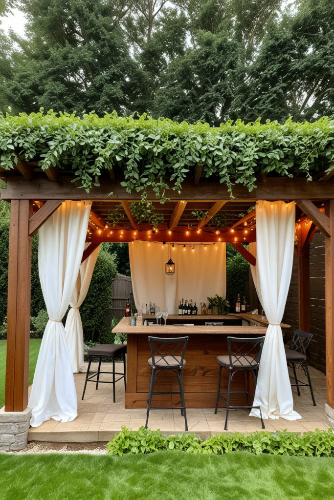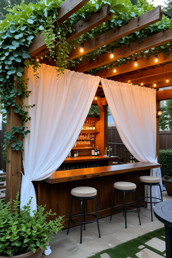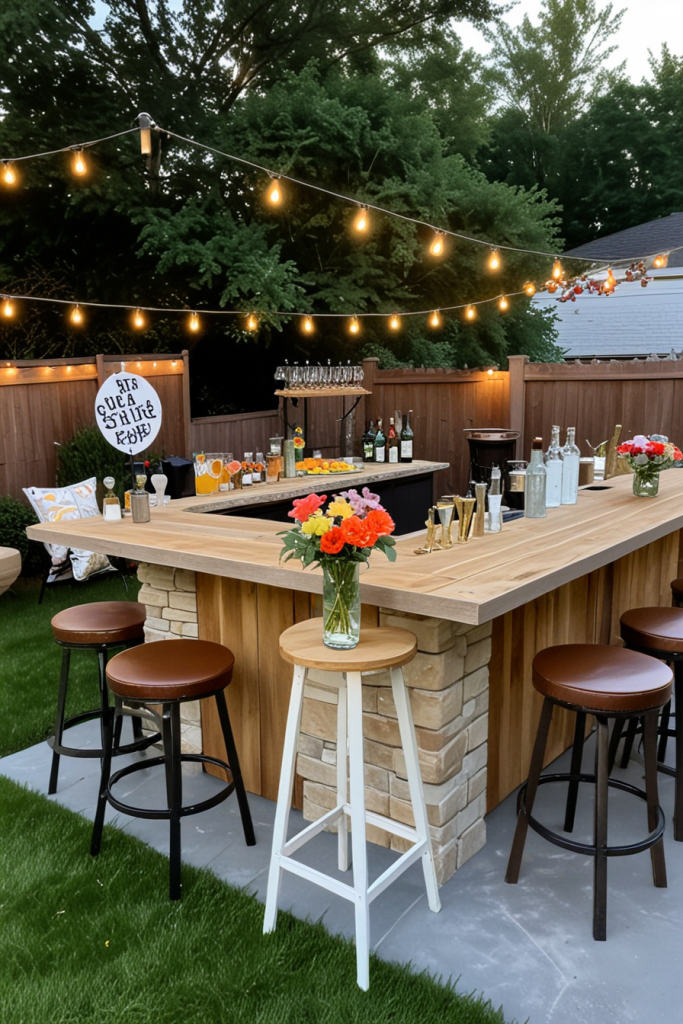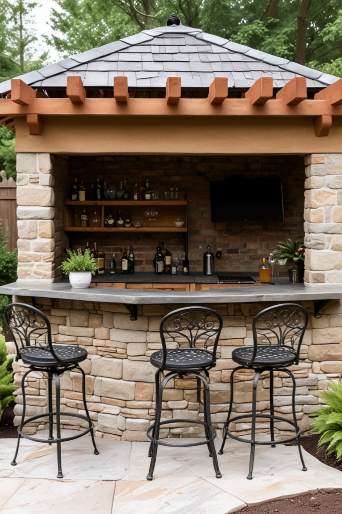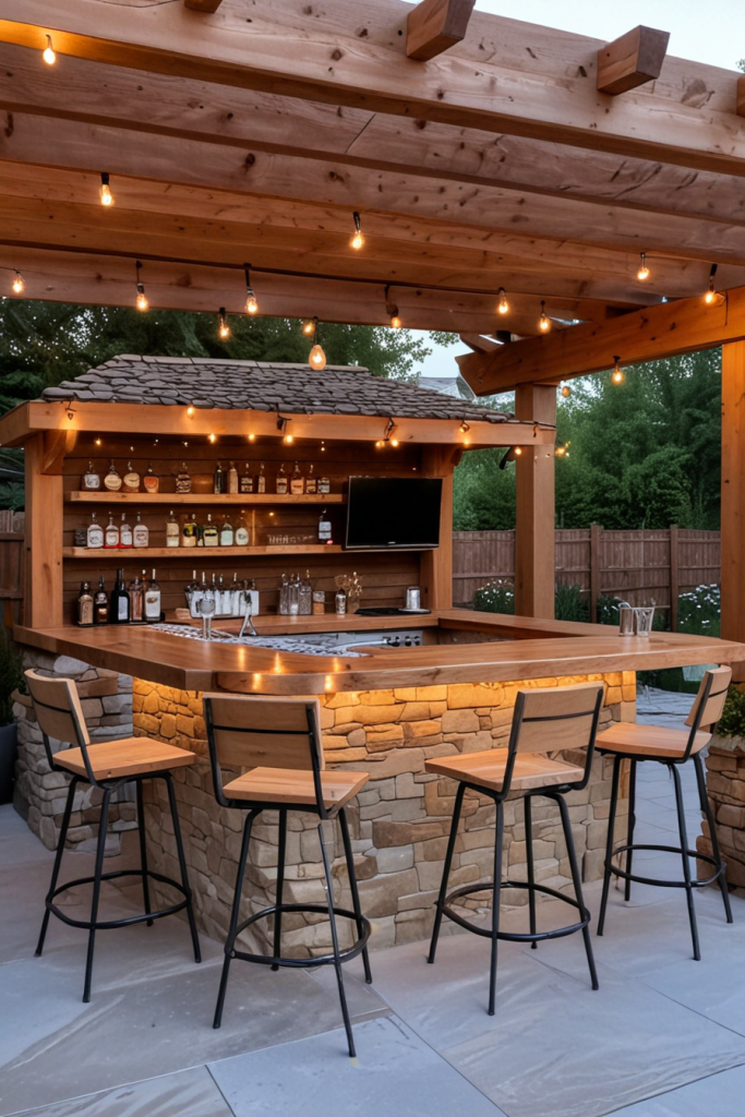 A completely enclosed summer backyard bar is functional all year round. Construct it within a gazebo, roof overhang, or under a canopy using waterproof materials such as metal roofing or vinyl siding. This arrangement is great for erratic weather conditions and makes sure your space remains functional during summer storms or intense sun in the afternoon.