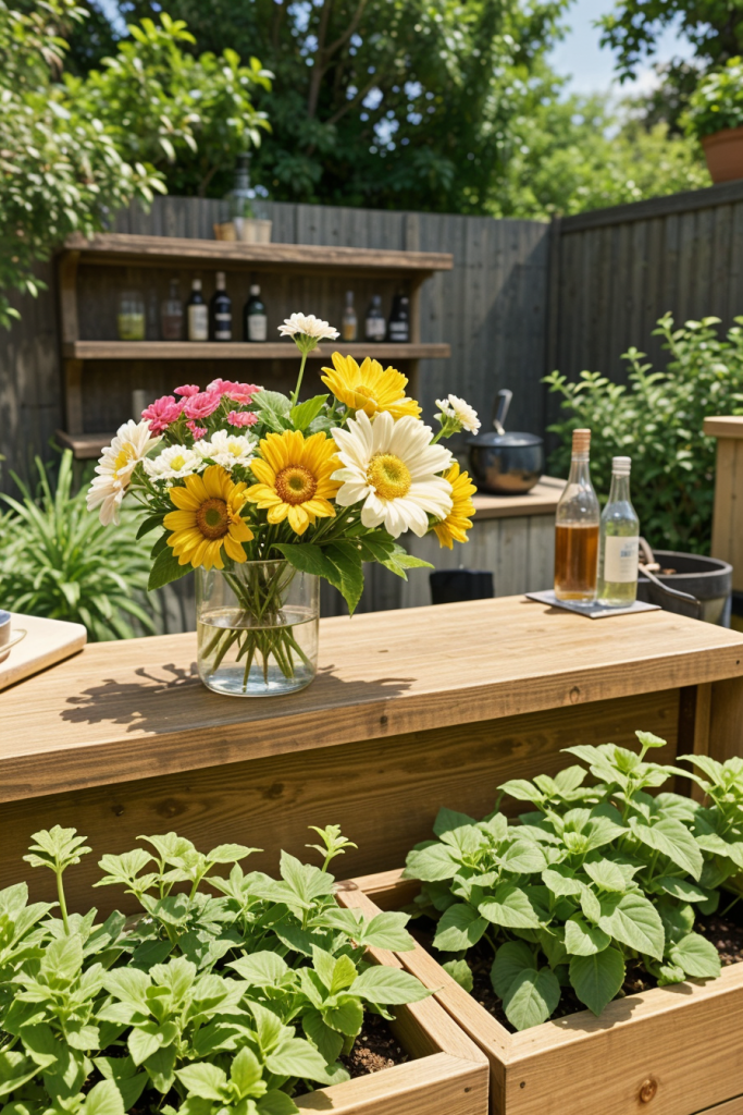 Grow a cocktail garden by planting herbs such as mint, basil, rosemary, and lavender adjacent to your bar area. Not only will these herbs improve your beverages, but they will also beautify the area. Vertical gardens, raised planters, and even ornamental pots can all be utilized. This will give your bar the appearance of a mixologist’s paradise, while simultaneously adding practicality to the space.
