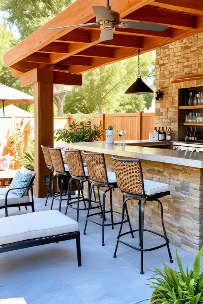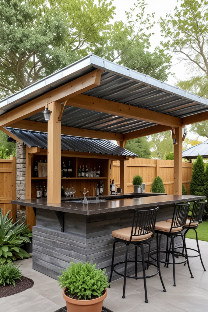 Covered Backyard Bar Ideas for Sun and Rain Protection