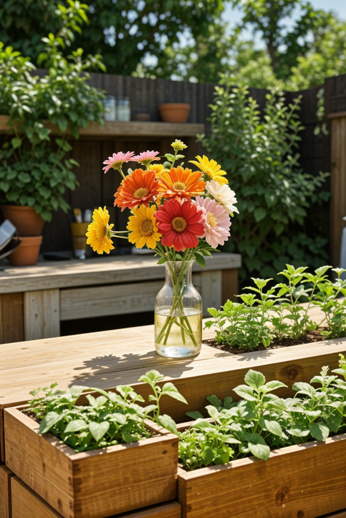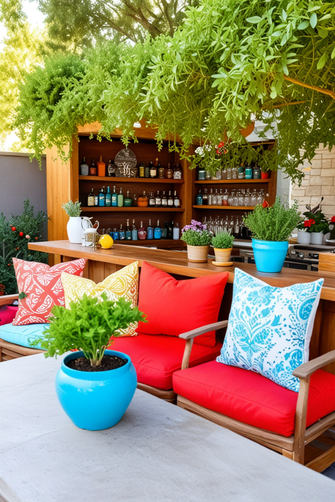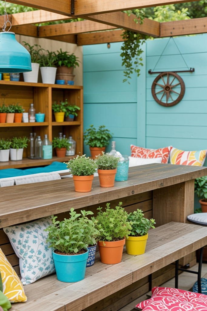 Keep your summer backyard barbeque lively by changing the décor with the seasons. During summer, utilize bright colors like coral or turquoise through cushions, outdoor art, and coasters. Potted mint and basil serve dual purposes as decorative and edible herbs. These seasonal touches add vibrancy to the space and leave a positive impression on visitors.