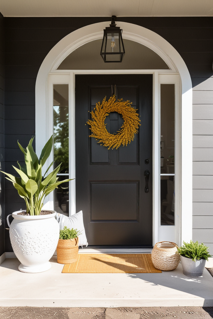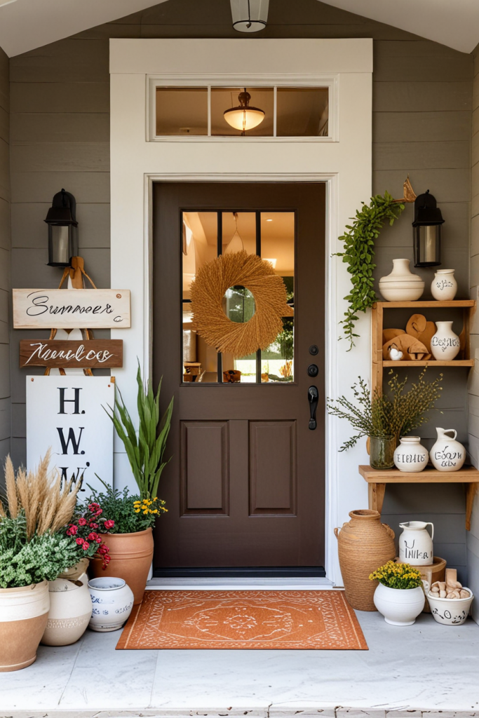 Planters, themed signs, and quirky sculptures make great summer accents for your front door decor. Every detail will ensure that your entryway looks appealing and festive. This combines modern charm with an atmosphere of celebration, ensuring that every single detail is captivating.