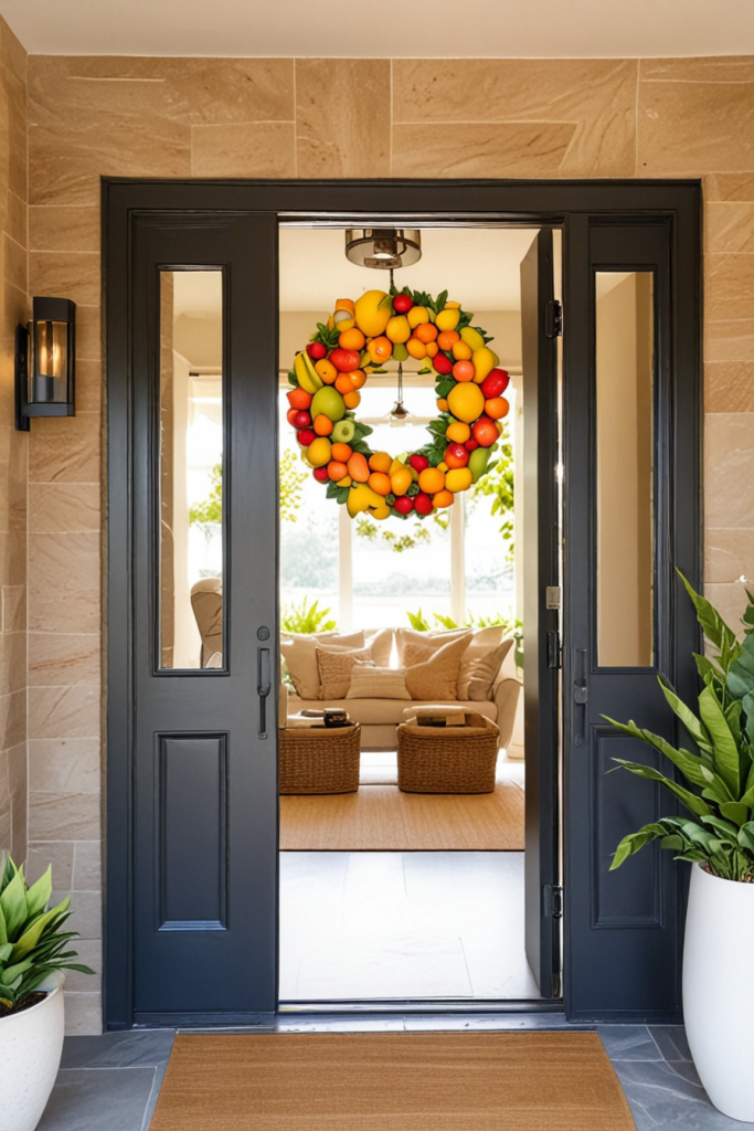 Creative Door Wreath Made of Artificial Fruit: Ideas and Inspirations
