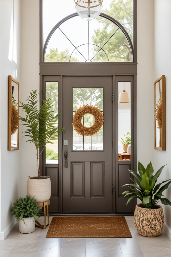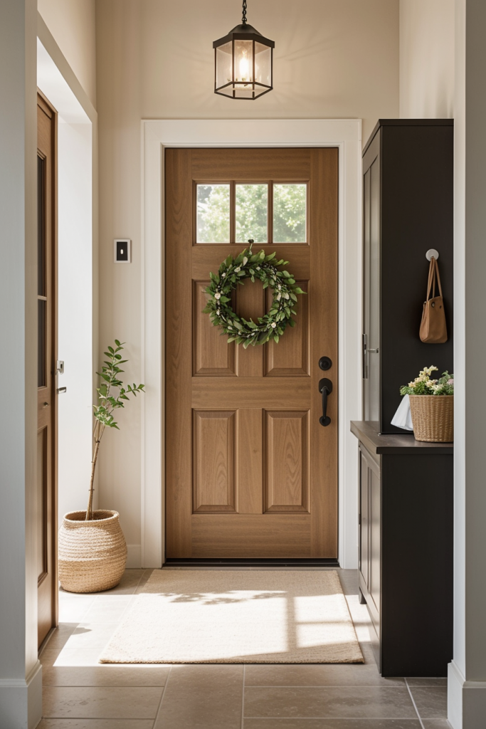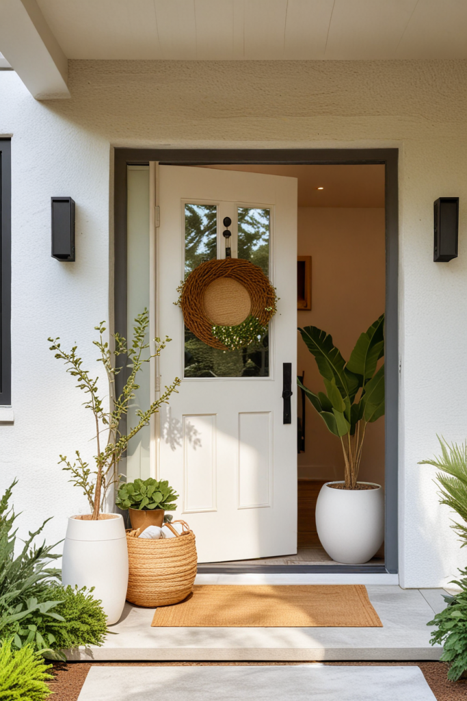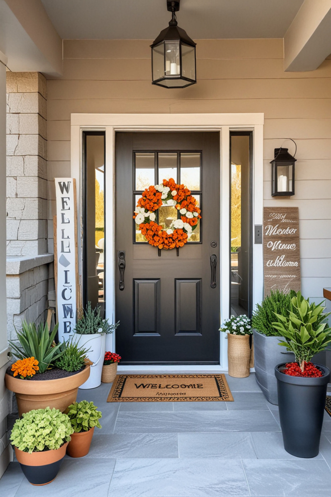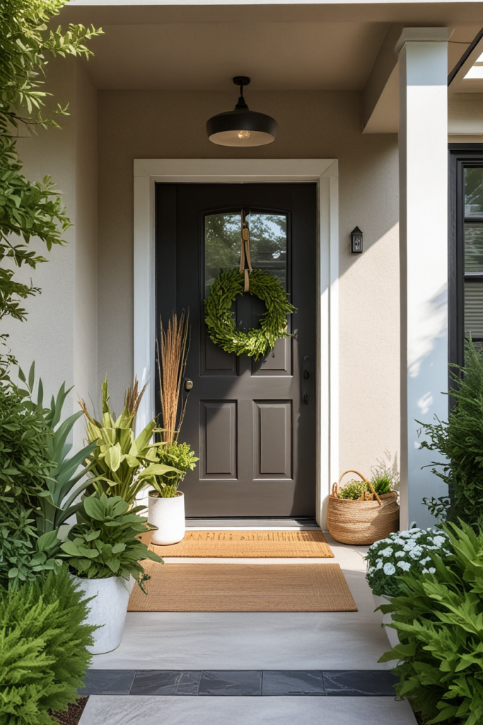 Incorporating natural materials like wood, stone or greenery into your front door decor creates a modern, cozy decor style. This strategy focuses on cooperation and sustainability by mixing carefully chosen outdoor elements with decorative ones. Nature greatly influences the overall look of entryways, making your home feel extremely warm and cozy.