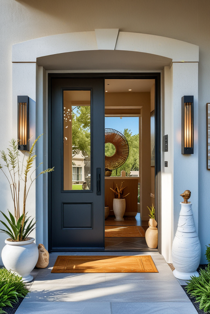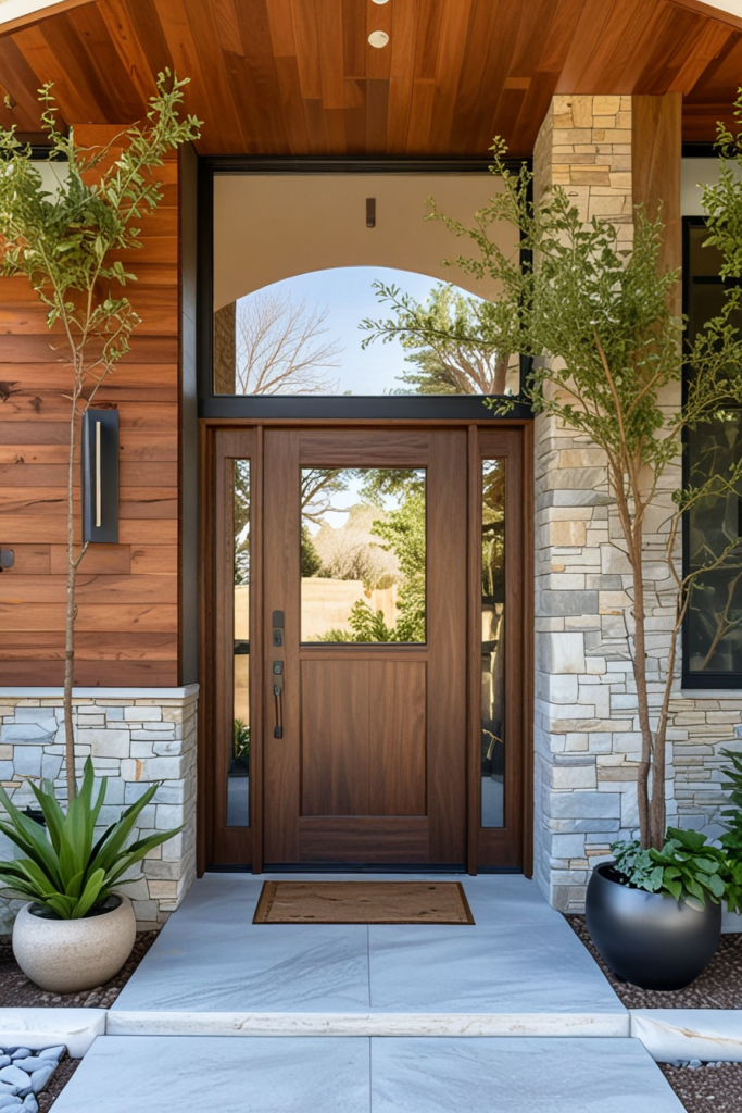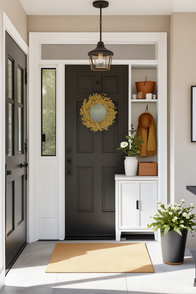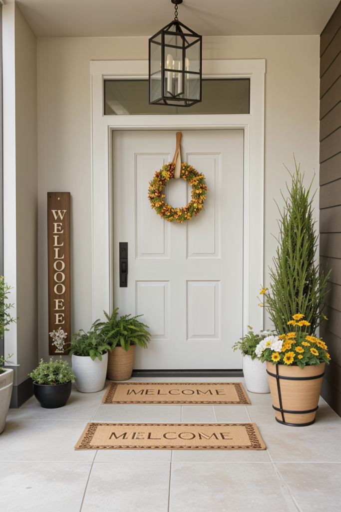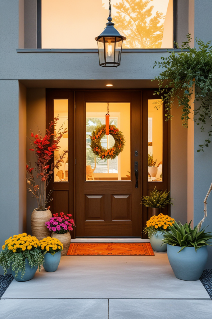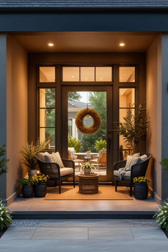 Incorporating natural materials like wood, stone or greenery into your front door decor creates a modern, cozy decor style. This strategy focuses on cooperation and sustainability by mixing carefully chosen outdoor elements with decorative ones. Nature greatly influences the overall look of entryways, making your home feel extremely warm and cozy.