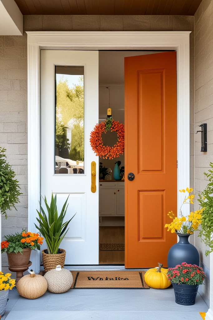 Colorful and daring door hardware can change your bland front door to a magnificent focal point. Contemporary door knobs, handles and even knockers in bright hues do not just add functionality, but also beautify your entrance. These remarkable features perfectly blend with seasonal decorations such as wreaths with birds and butterflies, artificial fruit decorating wreaths, and door garlands to achieve an elegant and unified stylish look.