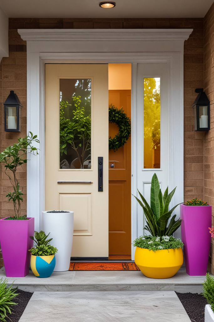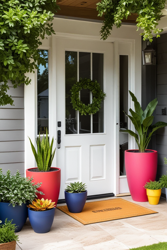 Using colorful creative planters can change your front door into a vivid summer paradise! These flowerpots incorporate new sculptural designs which are both useful and visually appealing at your entrance. Strange shapes, bright colors, and a variety of plants all enrich your outdoor decor. The blend of organic materials and modern design is wonderful, making the final look chic and striking, all at once.