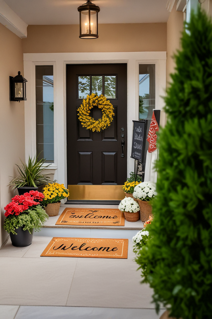 There are seasonal decor choices that can turn your front door into an inviting space Displaying custom welcome mats, seasonal planters, and decorative signs add an element of festivity to your entryway. Every accessory has been carefully chosen to not only match the summer theme but is also meant to geometrically balance the modern style of your exteriors.