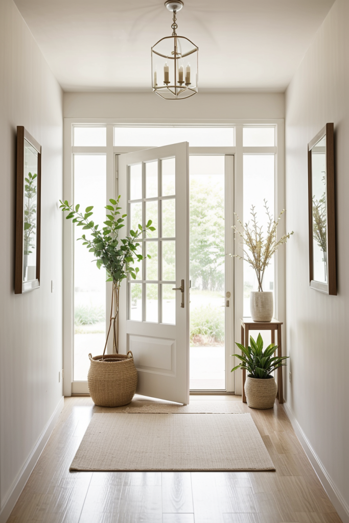 When placed next to your front door, mirrors can dramatically amplify the effect of the natural light feature while also virtually enlarging the surrounding area. Mirrors serve as additional decor accessories and at the same time, with their correct positioning, can uplift the look of the entrance area, making it sophisticated and more modern. Such clever use of mirrors guarantees that every visitor is treated to a stylish, airy and bright atmosphere.