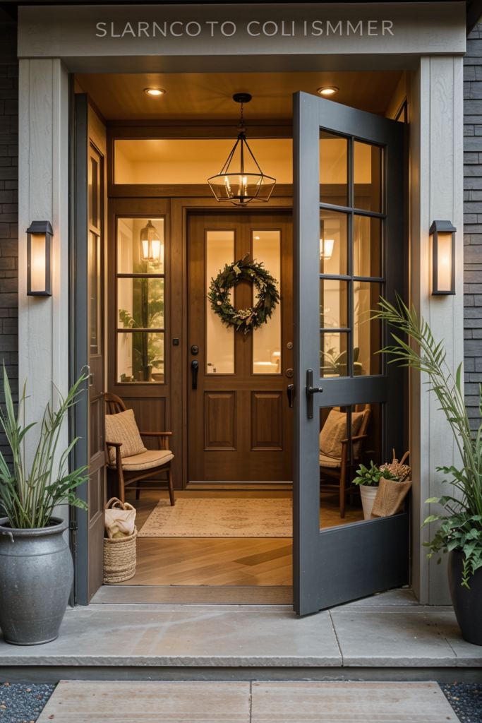 Anything that enhances your entry should invest in warm textiles, comfortable chairs, and soft lights. Increased coziness encourages guests to feel welcome at the front door. This particular design uses soft benches, light colored accessories, and warm lighting which makes guests feel comfortable as soon as they walk in. Having this thought out helps in fusing courtesy and modern dwelling hospitality to comfort and care.