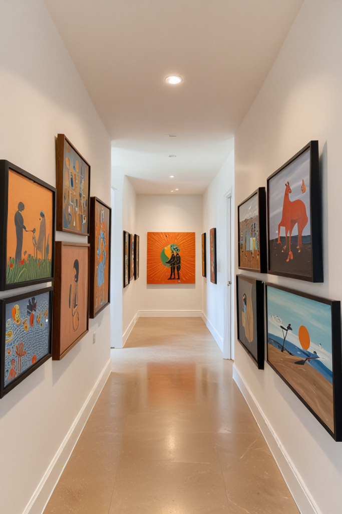 Encourage homegrown skill and add color to your corridor by displaying locally created art that captures the essence of your community. Distinctive pieces of art highlight your culture and modern aesthetics, effortlessly transforming your space into a masterpiece, and making it a welcoming environment. This collection of art pieces adds charm to the entire decor, enhancing the entry gallery to epitomize the local art.