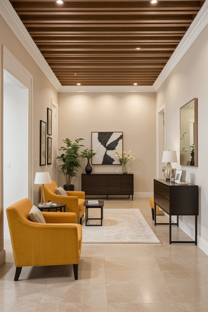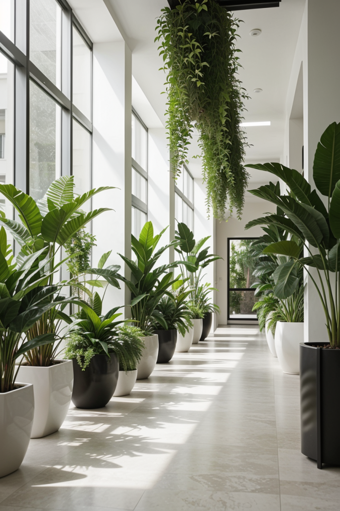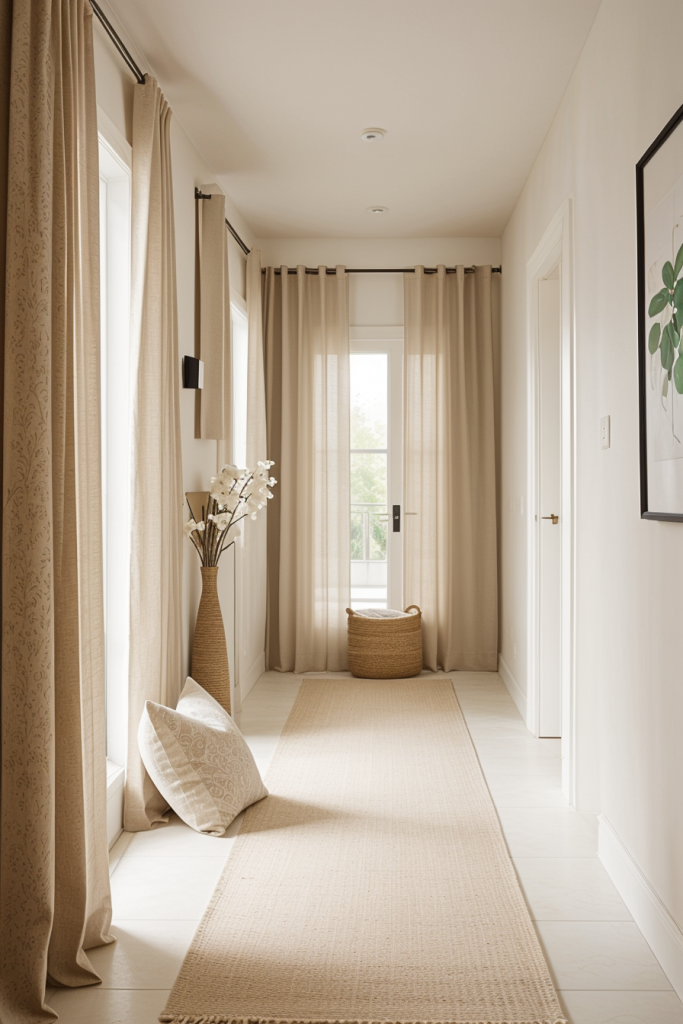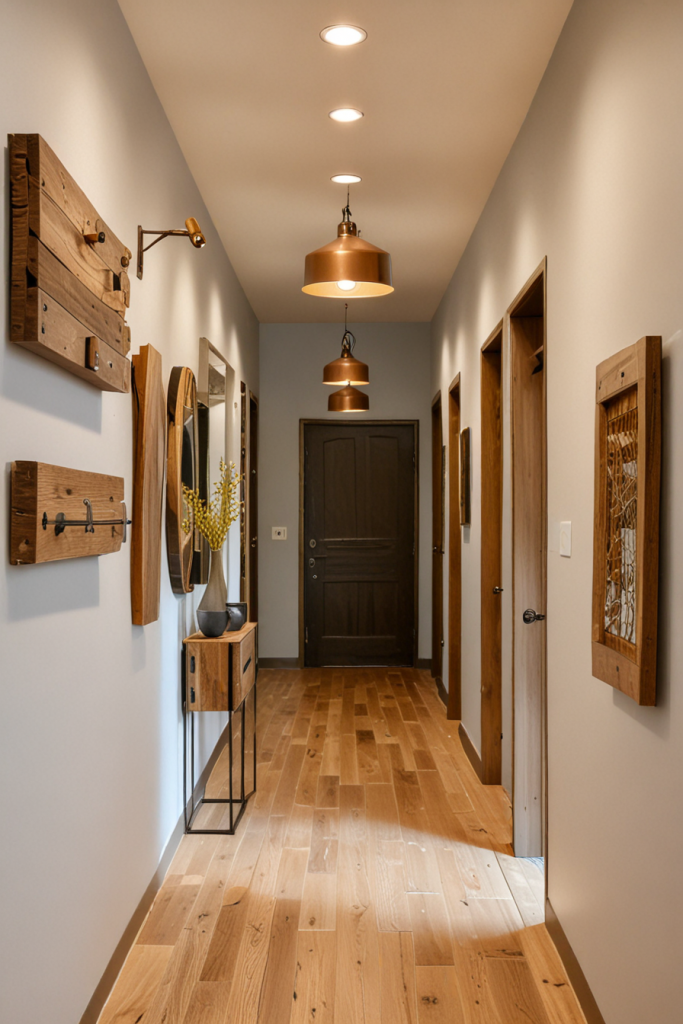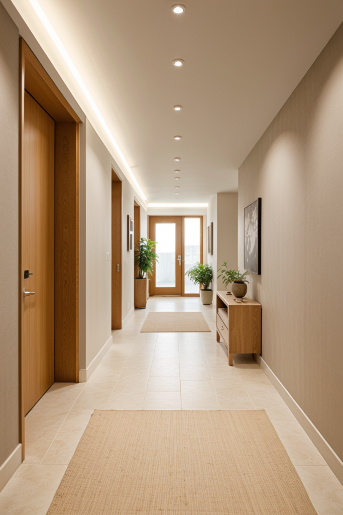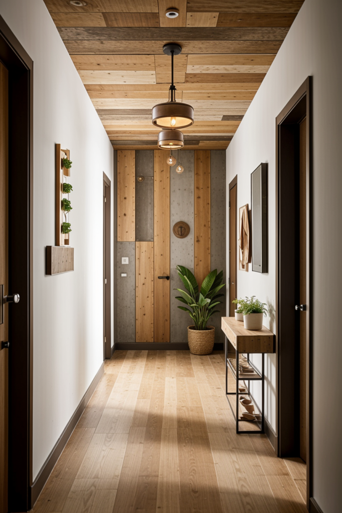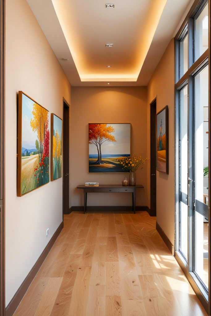 Ingrating natural space to your hallway can turn it into a relaxing getaway. Adding potted plants, wood accents, and stone decor can achieve a summery, refreshing feel. The subtle interplay between the greenery and natural elements like woods and stones provides a break from the monotonous routines of everyday life.