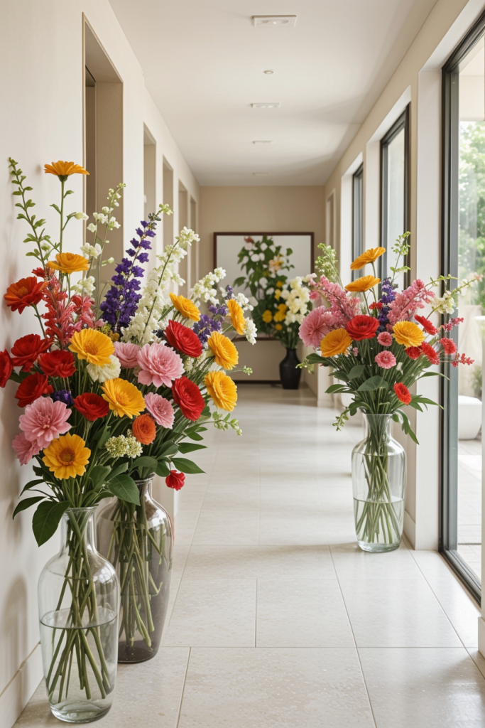 Optimize the corridor with stunning floral arrangements that provide vivacity and elegance to the entire space. Well-placed fresh or beautifully crafted artificial flowers bring life to the surroundings and create a summer atmosphere. As these flowers can be natural focal points, they will definitely capture the attention and liven up the entryway.