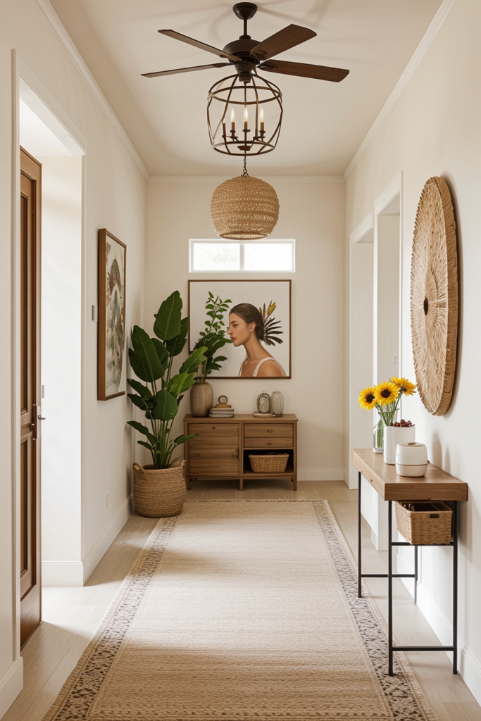 The flow of your summer hallway decor hinges on proper seating arrangements. With the careful placement of benches, console tables, and even storage units, the functionality, as well as aesthetic appeal of the hallway can be greatly enhanced. Striking an ideal ratio of seating and storage not only maximizes the space but brings in an inviting modern touch.
