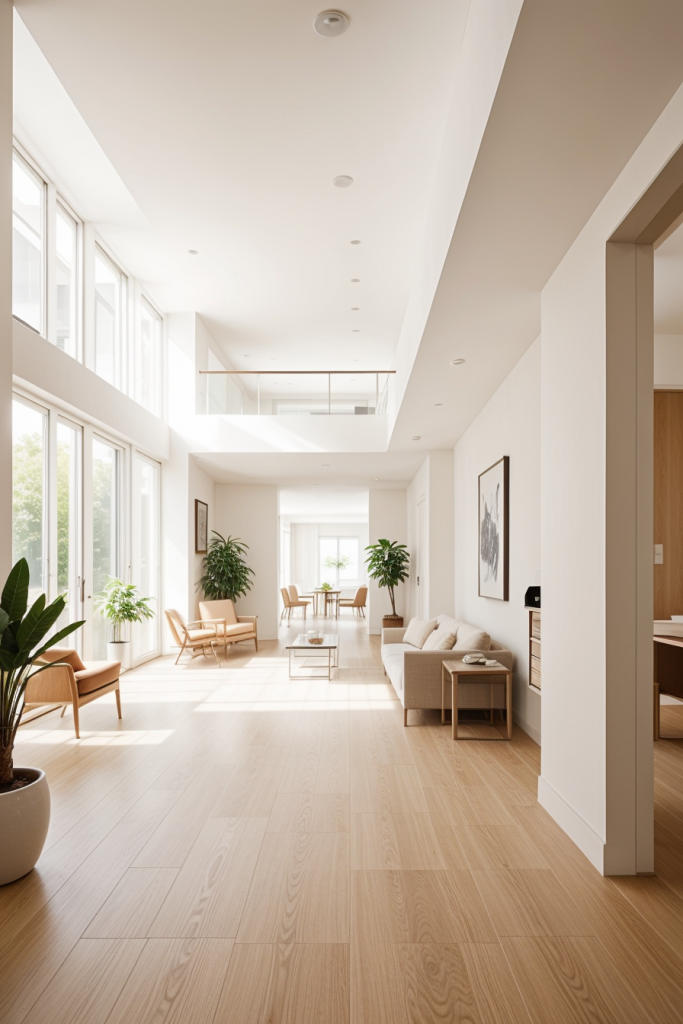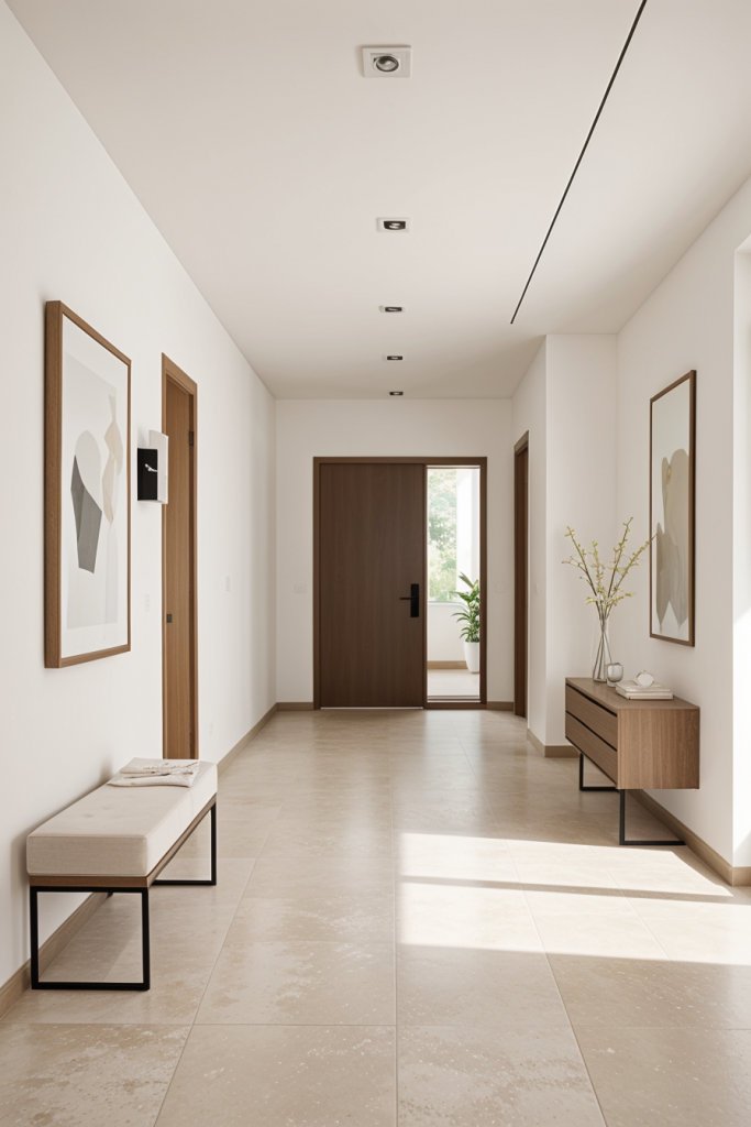 A fresh and inviting hallway begins with a good layout. Open areas and well-placed furniture with organized outlines contribute to the abundance of natural light and functionality in the given space. This design improves the balance and increases the calming and revitalizing sensation even further.