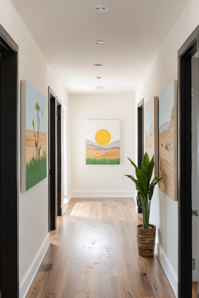Make the most of your hallway by turning it into an inspiring gallery by putting up seasonal artwork that captures summer. Whether in the form of curated paintings or digital prints, these pieces capture warm landscapes alongside inviting hues to spark conversation and creativity. Each artwork is strategically chosen to supplement the energetic atmosphere and to transform the entryway to a fusion of functionality and artistry.