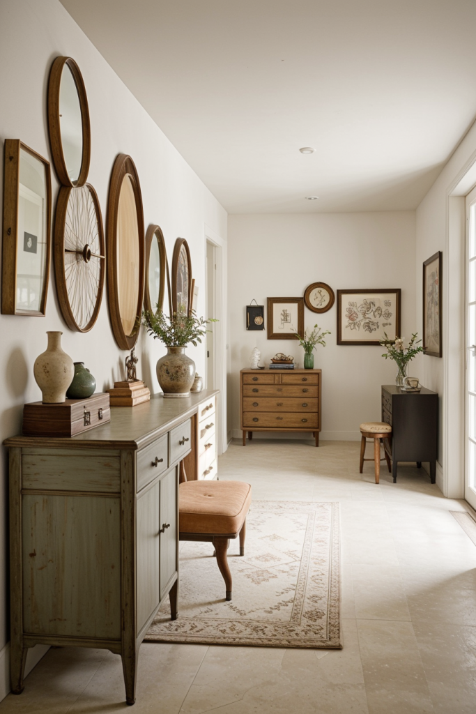 Give new life to your vintage summer finds by placing them down the hallway. The use of old-fashioned pieces of furniture or decor can provide an enticing juxtaposition with modern day elements, and these items add a touch of history and customizability to the space. They can also be great conversational pieces.