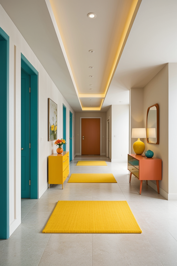 Let your hallway radiate serotonin with elaborate accents that spark conversations. Lively art pieces, playful decor, and even furniture which is bold and stands out can be used to achieve this while still adhering to the overall summer theme. These pieces not only reflect unconventional approach to decor, but also give a personal touch to the entryway.